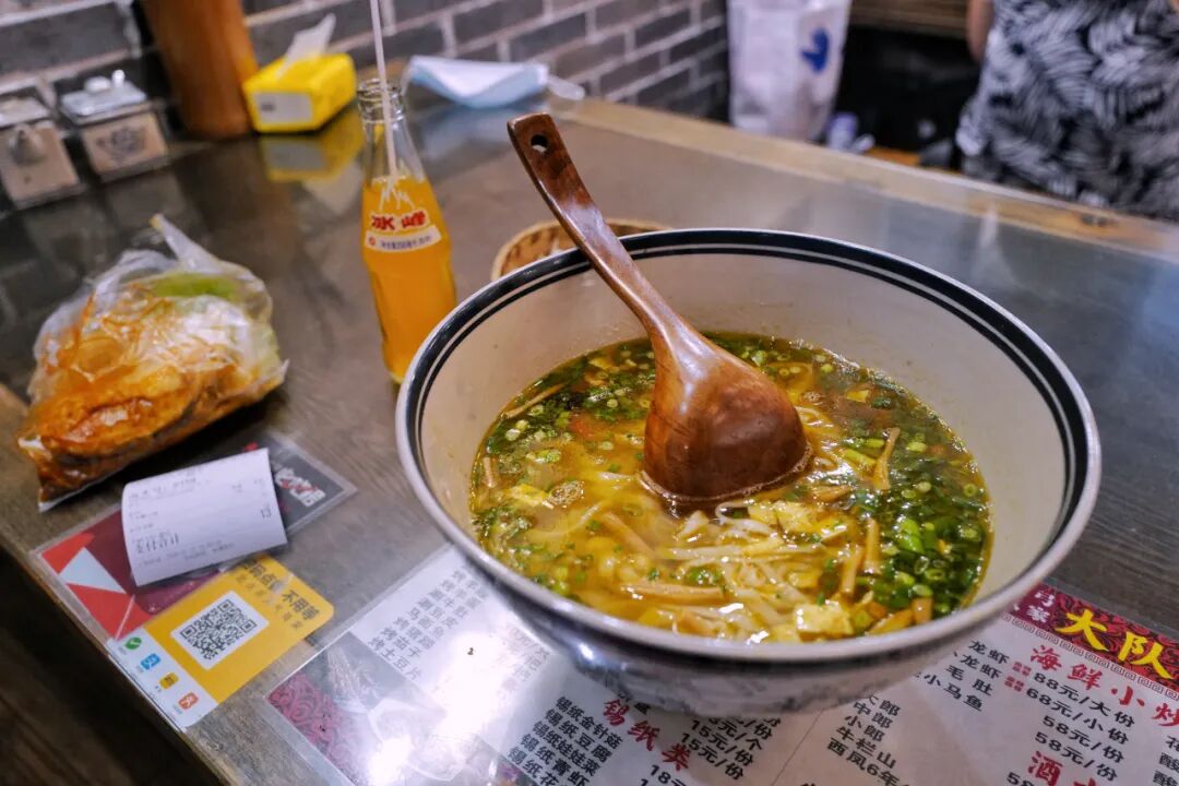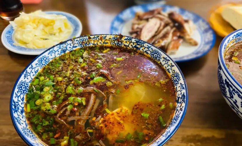 炒菜里面安利爆炒鱼肚,咬下去有爆汁的感觉。鱿鱼嘴,吃过第一口就停不下来的美味。炒豆芽、干煸鸭头、炒黄喉都还不错,这时候就很希望多带几个朋友出来玩了,能多吃几个菜。羊血被切成细丝,加上粉丝做配角,汤底浓郁是整个西安的特色,毕竟用的大多都是肉汤,加点辣子,配个饼,喝起来更香。![]()