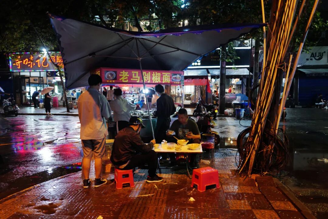 8点以后,这座城市才像是「活过来」的样子。路边摊纷纷开始出动,翻动炒锅的声音,是进入夜晚的序曲。![]()