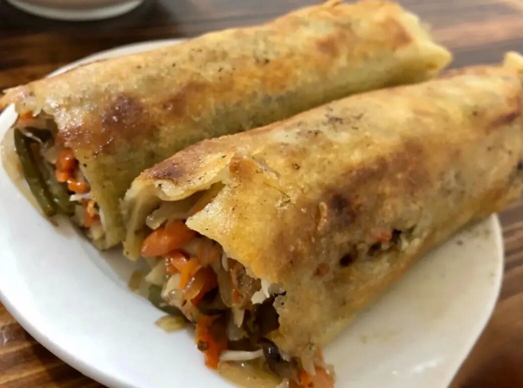 同样值得推荐的还有洗菜桥老太婆麦饼,这家店里除了特色的麦饼还能吃到其他台州小吃,像类似春卷的食饼筒,以及烤姜汁。