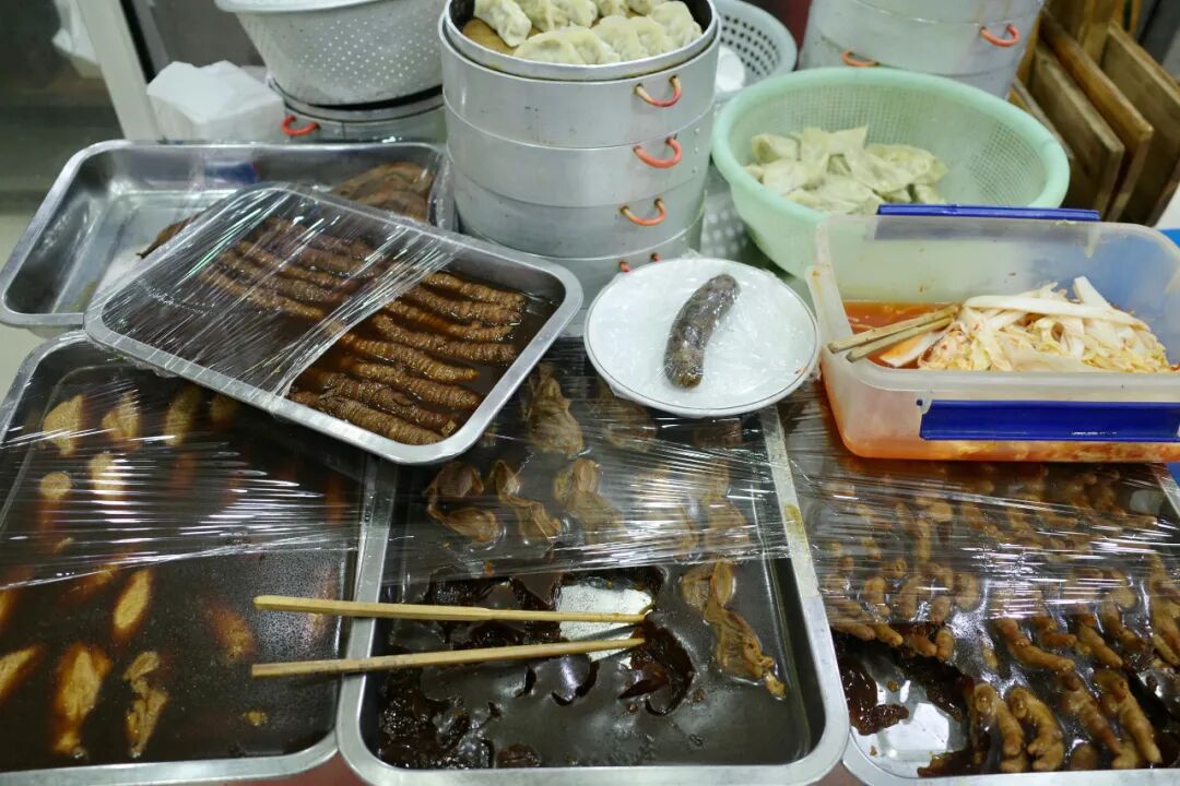 做餐馆就是这样,生意越好的店食材消耗快,送到客人嘴里的也自然更新鲜。虾皮丝瓜、葱油牛百叶、卤牛杂再加一份特色红烧鱼泡,配上冰啤酒,聊天干杯简直太惬意了,吃排档嘛,吃的就是一口烟火气。