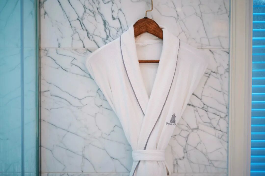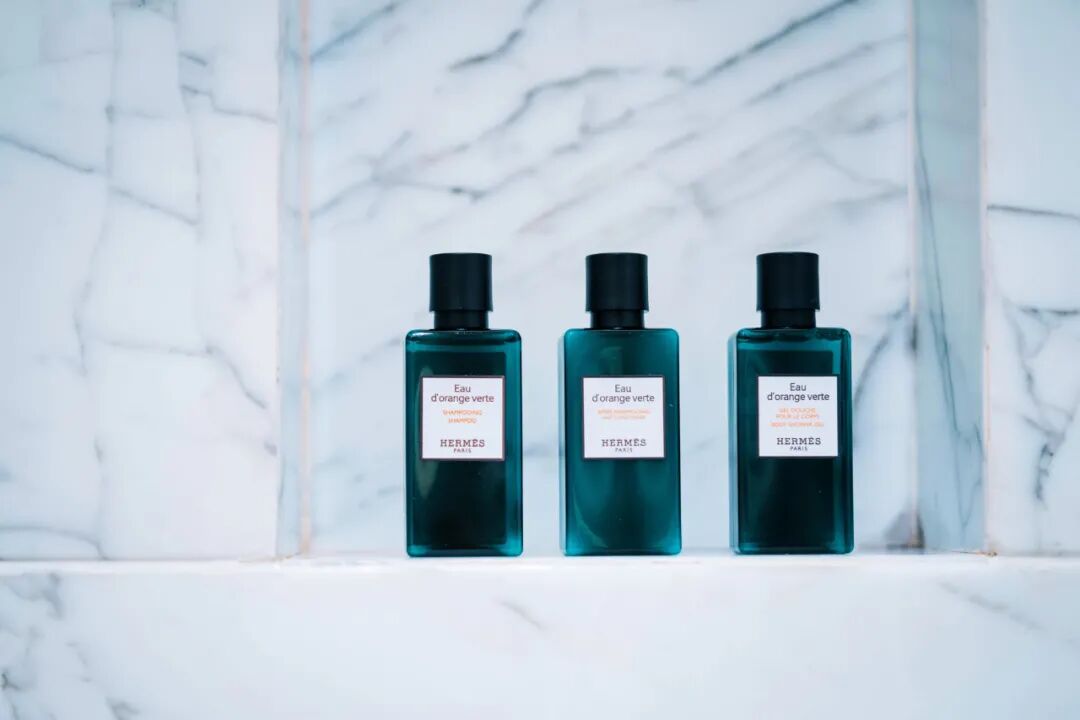 洗漱用品爱马仕,纯净水是依云、浴袍绣Logo、水果每天送一盘、报纸也是天天补;迷你吧小食、冰箱酒饮全免费、每天傍晚还有下午茶和Happy Hour,只要是住店客人都免费。