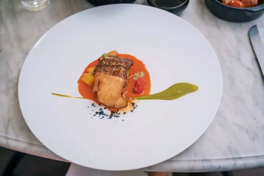 特别推荐香煎海鲈鱼,鱼肉纹理鲜明,鱼皮煎得香软色泽诱人。