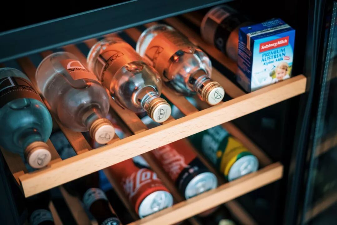 Mini吧自然也是够大方,里面有水、气泡水、可乐雪碧、牛奶啤酒、橙汁。