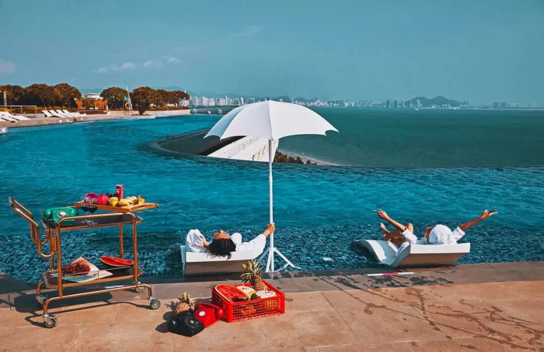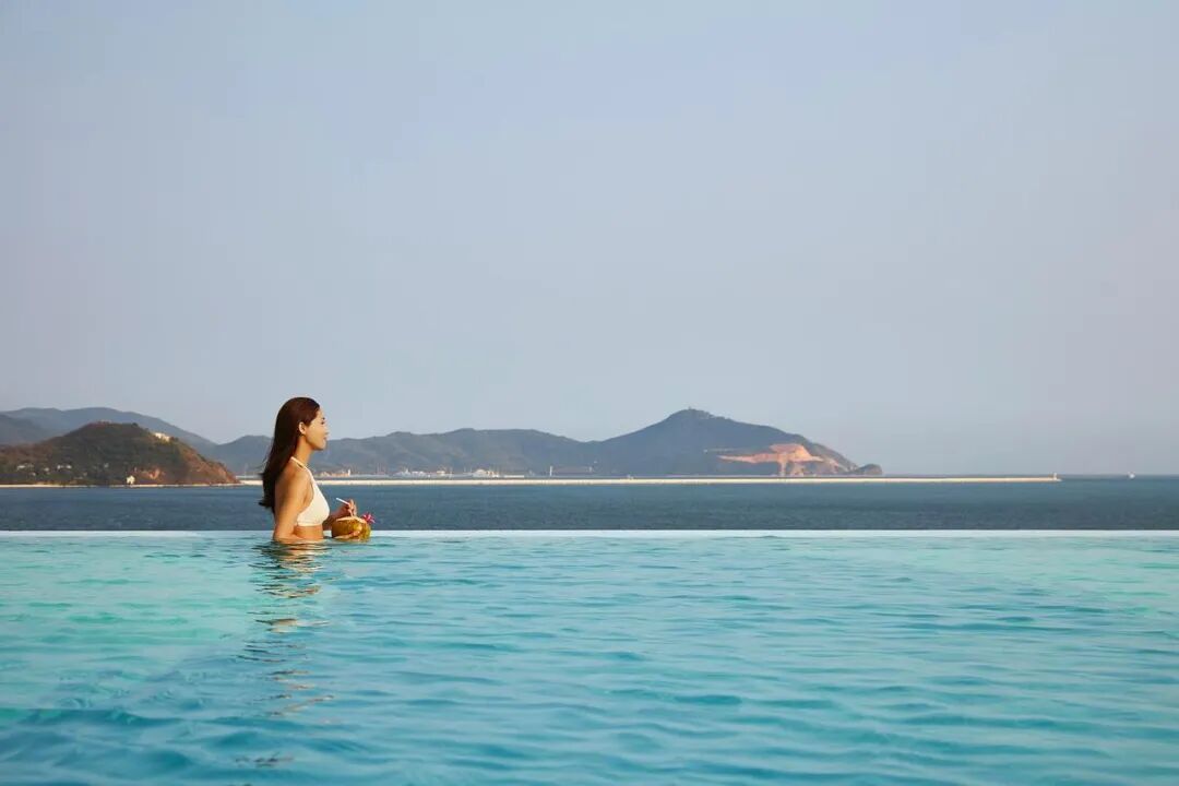 和瑰丽一样的无边泳池,俯瞰整个三亚湾的全景,价格比瑰丽便宜一半还要多。
