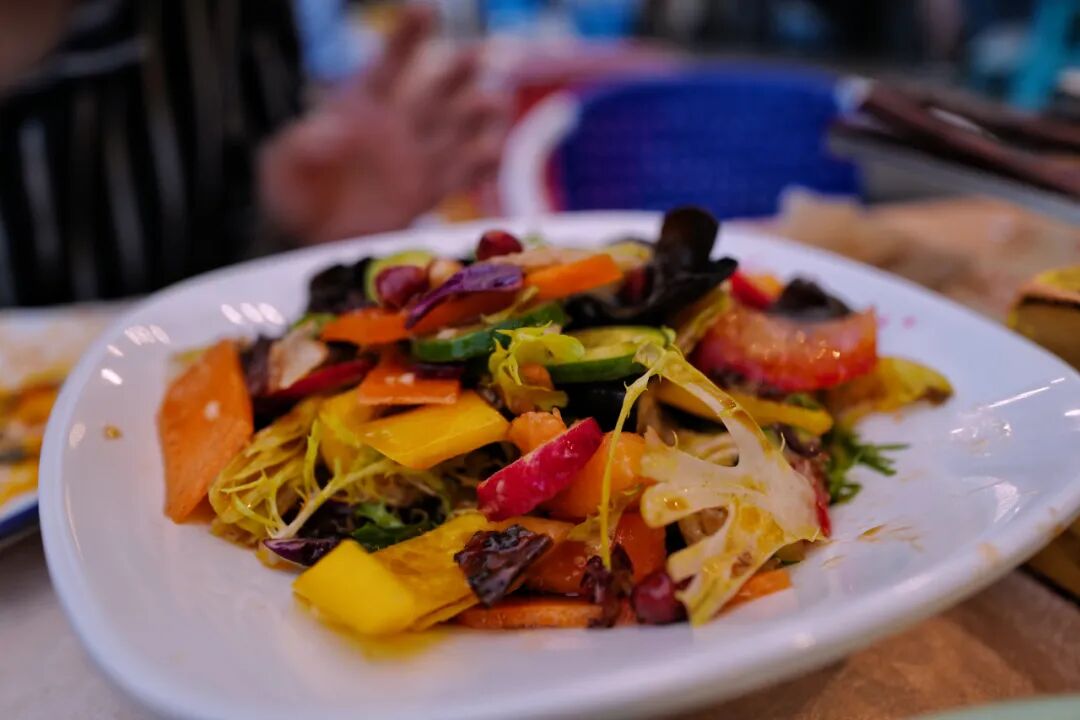 我还点了一盘凉拌沙葱,酸酸甜甜的很爽口,是脆脆的口感。沙葱其实是骆驼吃的食物哦,只在西北地区才有。