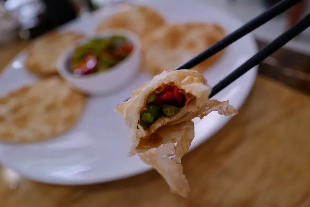 再特别安利一下烫面油香,它也是一种面食。卷着辣椒一块吃,越吃越香。