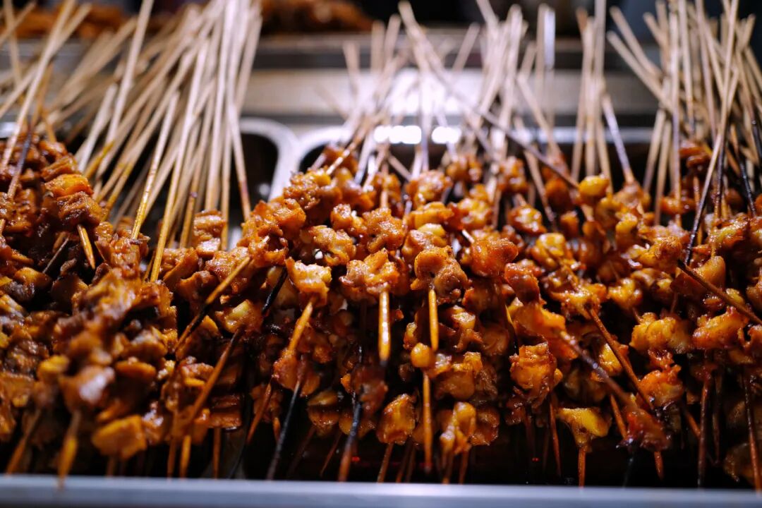 烤串,夜市上的烤串摊不少,主要是西北烤串和新疆烤串两种。10块钱4串的牛腩筋、牛脖筋、鸡软骨你值得拥有。