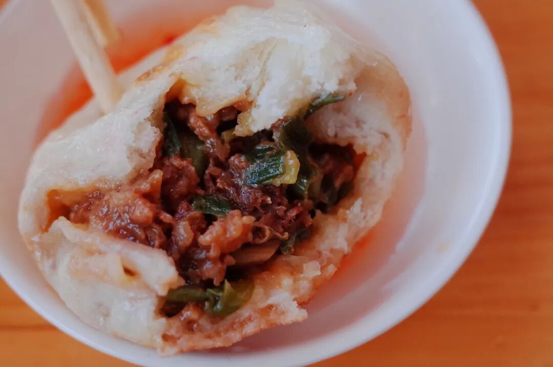 不得不说,发明这种这种做法的是真是奇才,蛏子外的油炸面衣带着咸香,而内里的蛏子仍旧保持着本身的鲜香,实在是妙。店里的菜单很简单,只有煎包和两种汤。原本我们两人打算点八个煎包,结果看了眼别人桌上的煎包,一个个头都有拳头大了,于是就点了六个,再来上两碗汤,分量刚好。煎包的内馅是大块的猪肉和些许葱,用料很实诚。但和平时吃的汤汁会溅出的煎包不同的是这里的煎包皮会更厚些,馅料几乎占满了内部空间。另外的两碗汤则是海蛎豆腐汤和红枣花生汤,如果是来吃早餐的话,我自己更喜欢后者。煮得软软的花生一抿就化在嘴里,和红枣相搭,是恰当的清甜。而海蛎豆腐汤则是当地传统的做法,勾了厚芡,里面有海蛎、鱼饼、胡萝卜丝、豆腐等等,类似于清淡版的海鲜糊辣汤,配上煎包的话,就略撑肚子。![]()