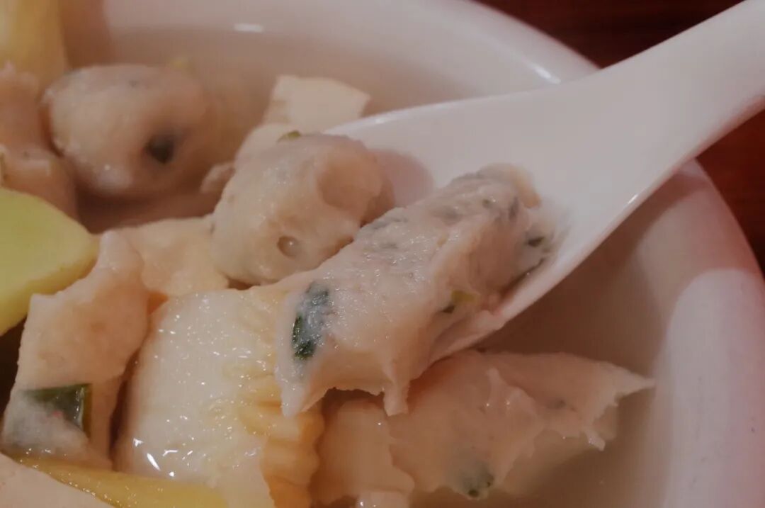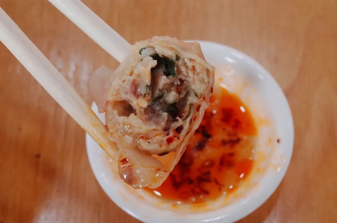 吃鱼丸汤时,一定要记得加两三滴白醋,可以使得鱼丸汤的鲜被最大程度地被激发出。当汤汁配上紧实的鱼丸,一口入肚,鲜美溢满口腔。说是鱼饺,其实内馅跟鱼倒没什么关系,主要是猪肉和脆爽的马蹄。![]()