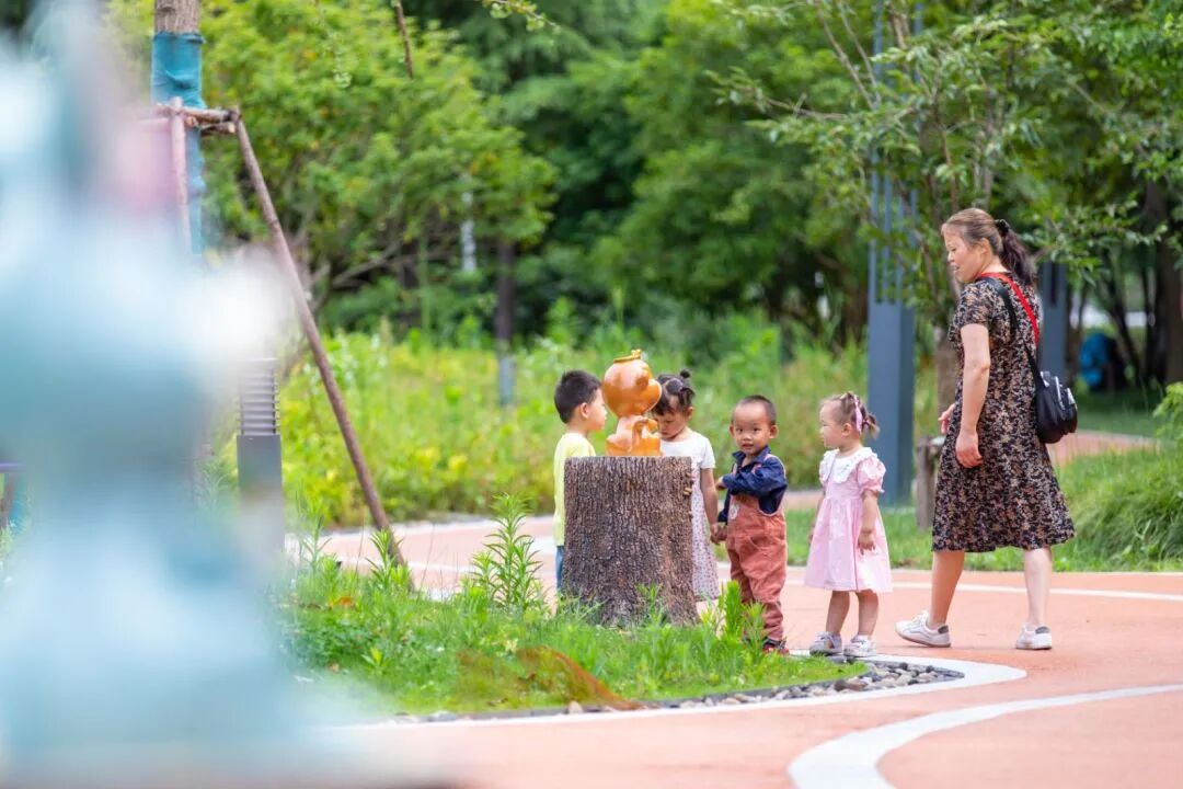 设计围绕休闲健康主题,集休闲、运动、生态修复等功能为一体,设置彩色健身步道、健身广场、健身器材、篮球场、足球场、乒乓球桌等,可满足各年龄段人群游乐、休闲、健身需求。值得一提的是,公园儿童游戏设施种类丰富,童趣园内设置游戏沙坑、攀爬坡、攀爬网、跷跷板、秋千、趣味声乐设施等,寓教于乐,充满童趣。