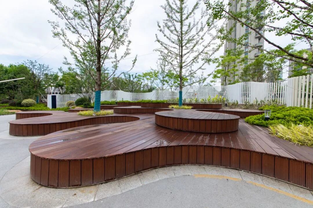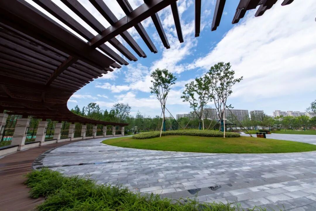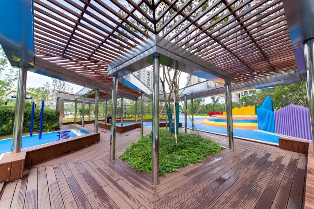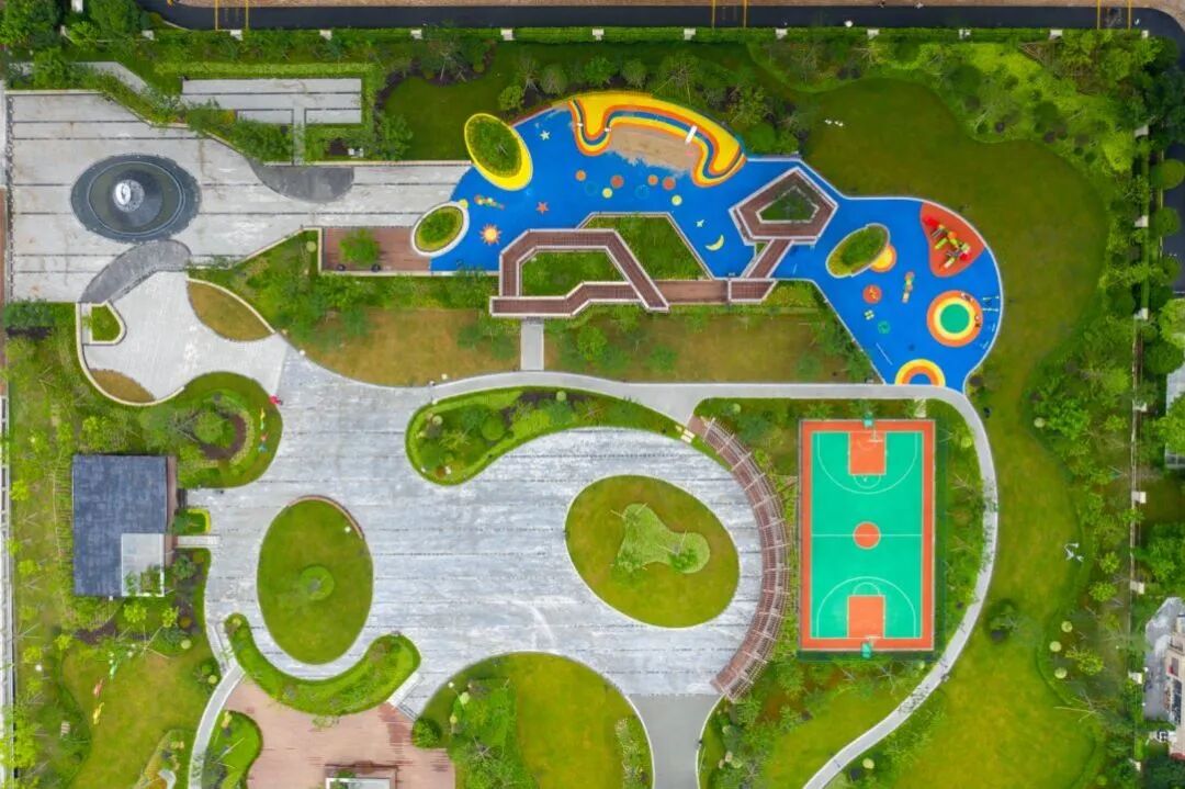 园内场地空间动静相宜,集休闲娱乐、运动健身、游览观光功能于一体。健身活动区和运动场地内设置健身器械、健身跑道、树池坐凳、弧形廊架等设施,开辟篮球场、网球场等运动空间,满足不同人群运动健身休闲需求。儿童活动区内,游戏设施种类丰富:滑滑梯、跷跷板、秋千、游戏沙坑……,让小朋友拥有多样游戏体验。