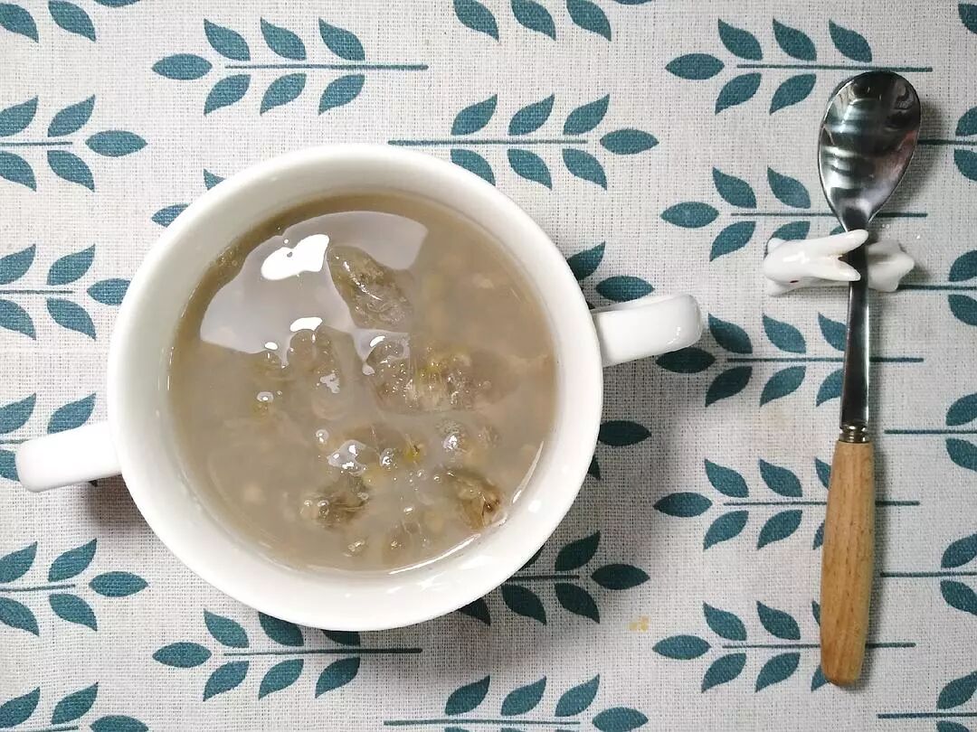 还阔以试试绿豆冰沙,绿豆汤煮好晾凉后加入碎碎冰(我偷懒没有就打碎😂)。