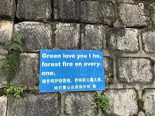 去年徒步虎跳峡的时候看到的 神翻译。。