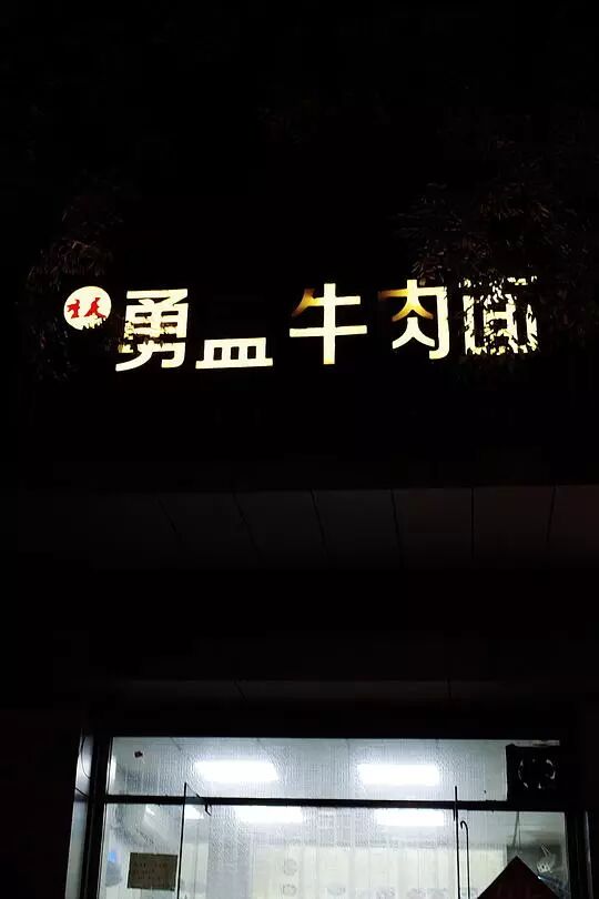 北京路边包子店,大肉包子的招牌因为灯管不亮,大内包子