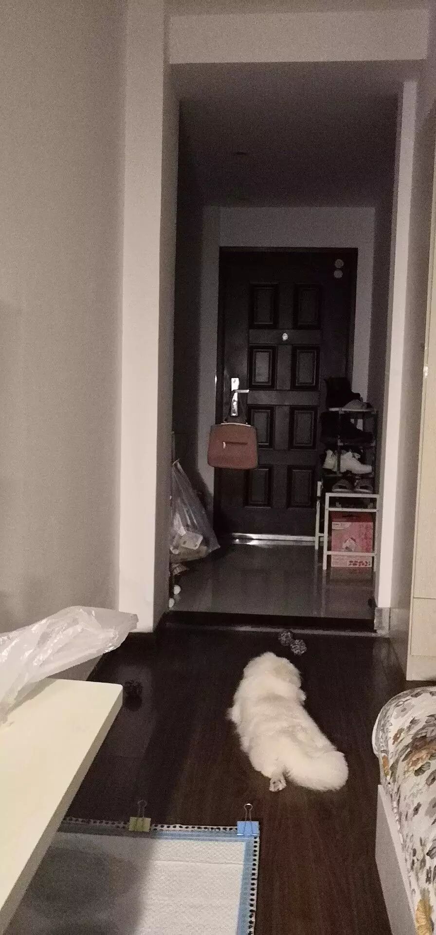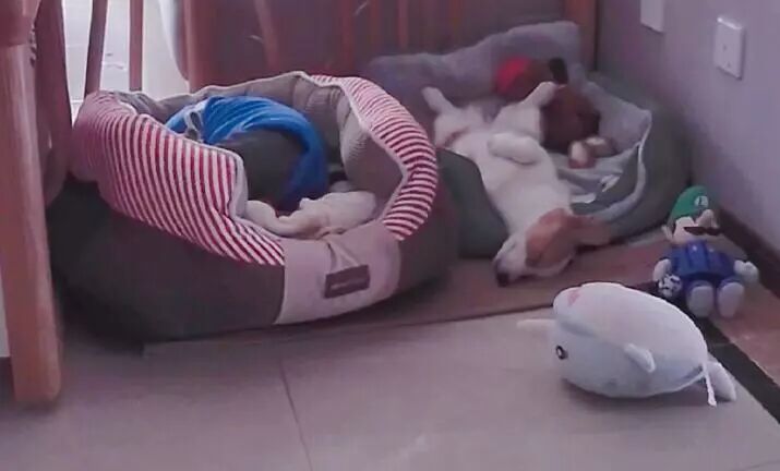 这是监控里我家狗子对着门等我回家…等了再睡,睡了又等 ,它不像小时候那样了,小时候还要玩玩具啃墙,长大了只是等着我回家::>_<::