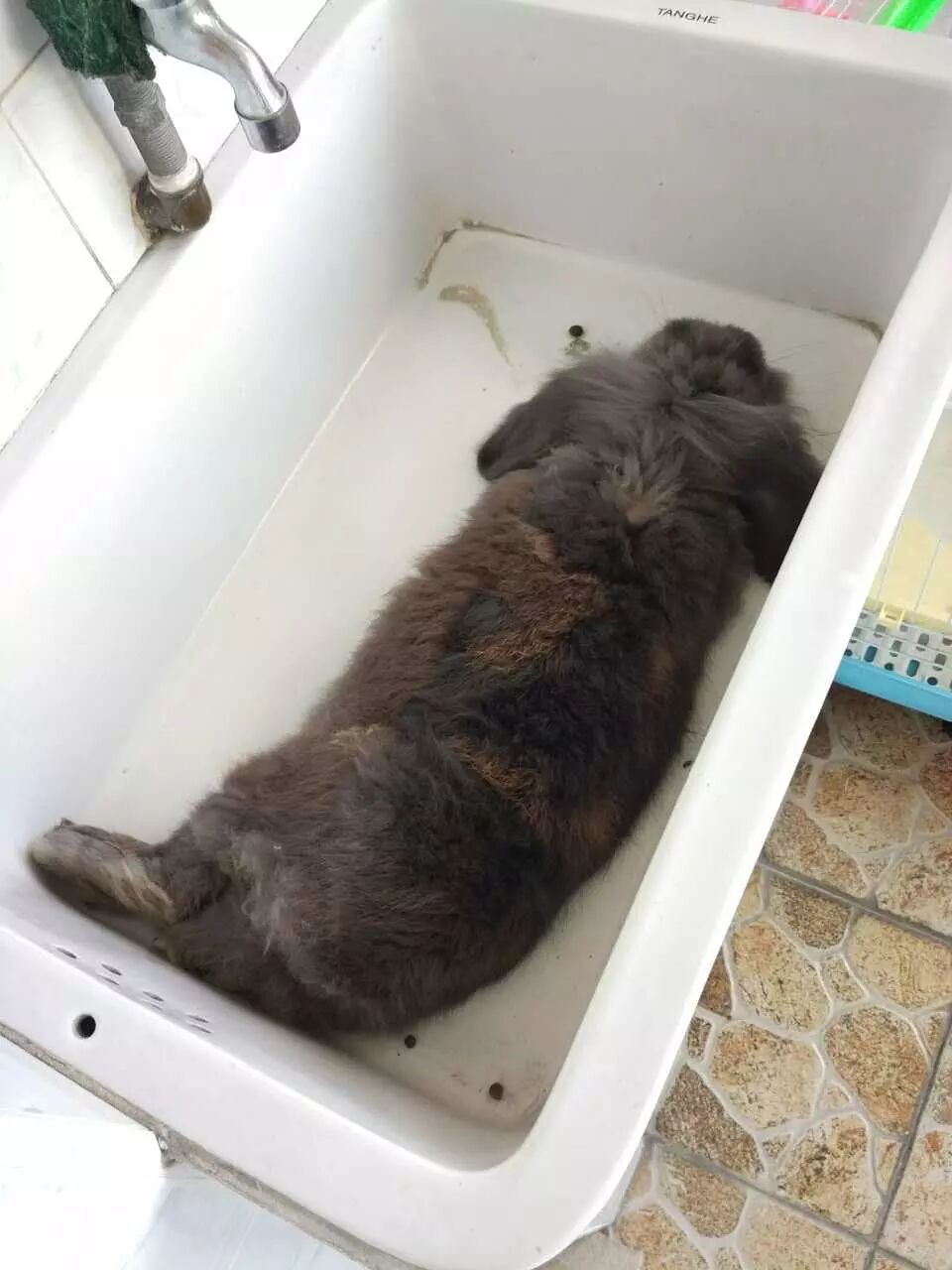 兔子,它活着的时候偶尔会自己跳到阳台高处的水槽里,恐高不敢跳下来,就索性躺在里面睡觉了