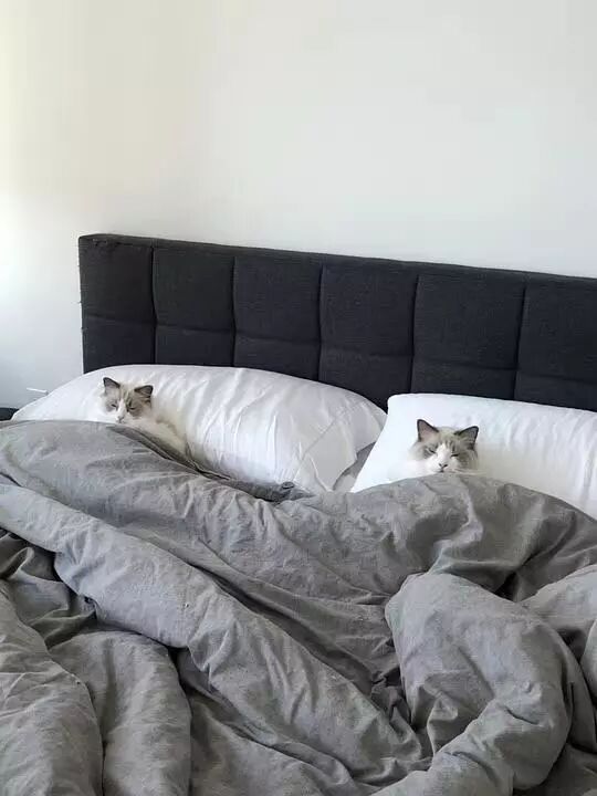 猫哥猫妹常常会在铲屎官们出门后跑到他们的床上盖上被子睡大觉。哈哈😄!