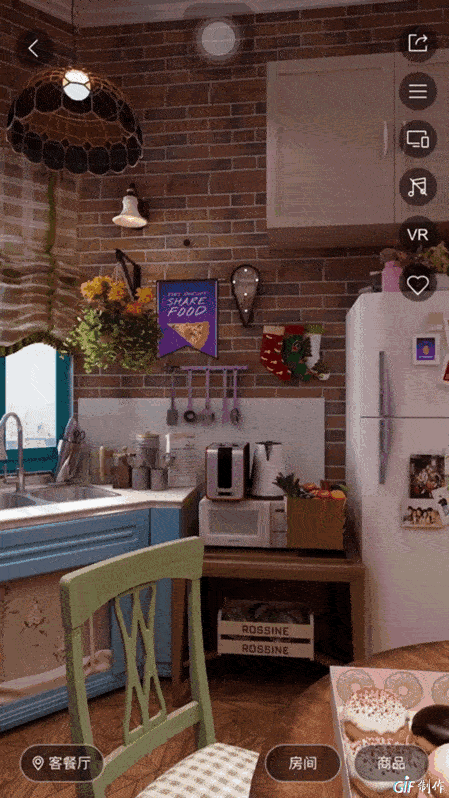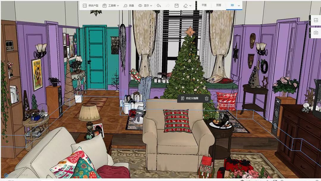 楼主加入了圣诞元素,空间里一些具有代表性的装饰,比如入室门背后那个黄色的相框,专门找了朋友建模的。