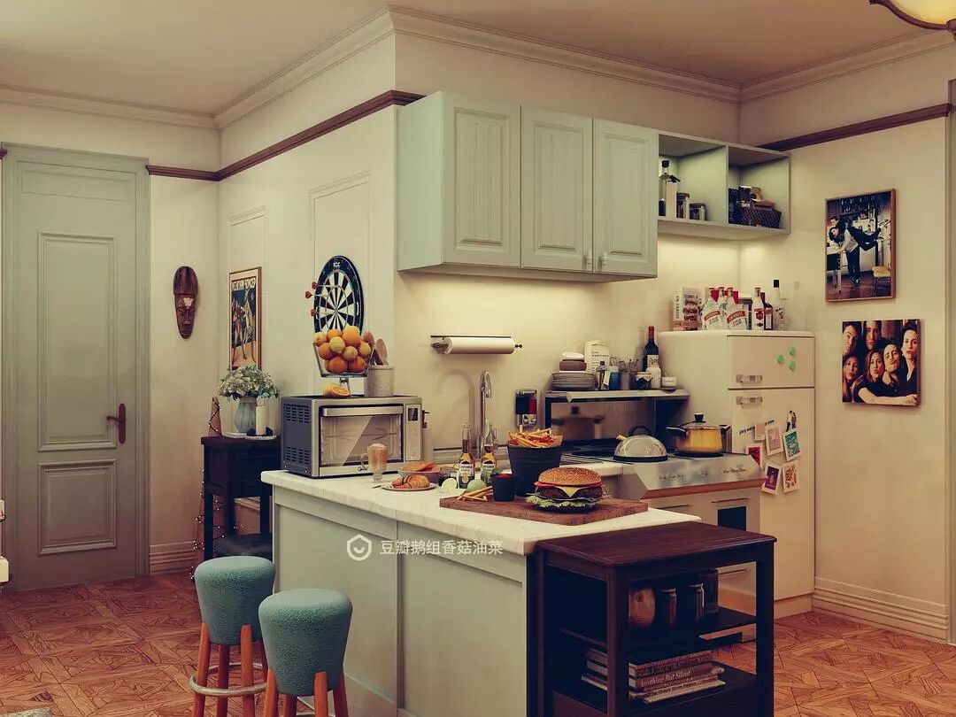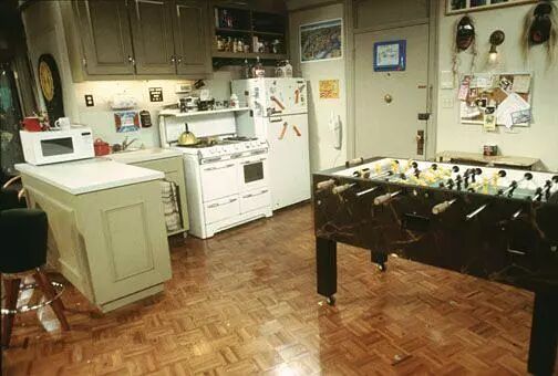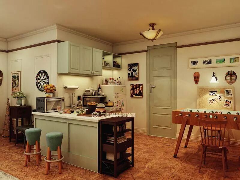 厨房是出现比较多的场景,开放式的,面积不大,反正他们有莫妮卡,不用担心一日三餐。厨房还有一个很重要的物品,就是那个足球桌。