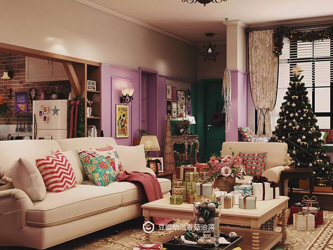 客厅是日常生活的核心区域,《老友记》里大家经常瘫坐在沙发上聊天,八卦,看电视,到了节日也可以开个趴体!