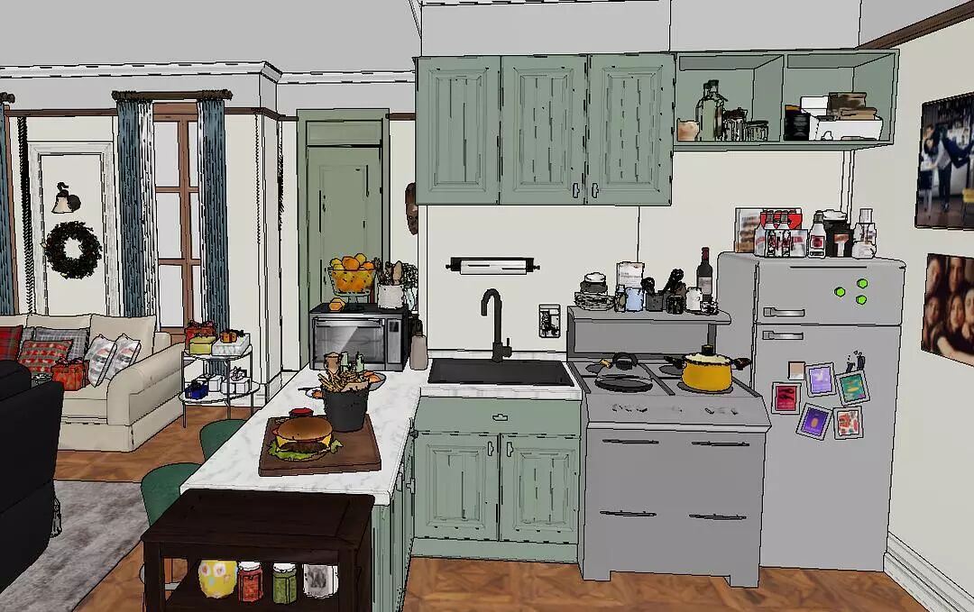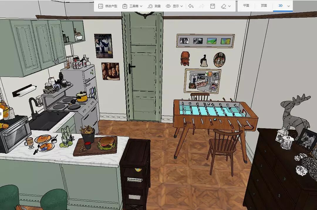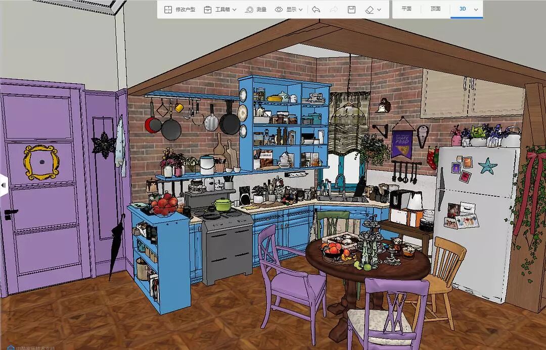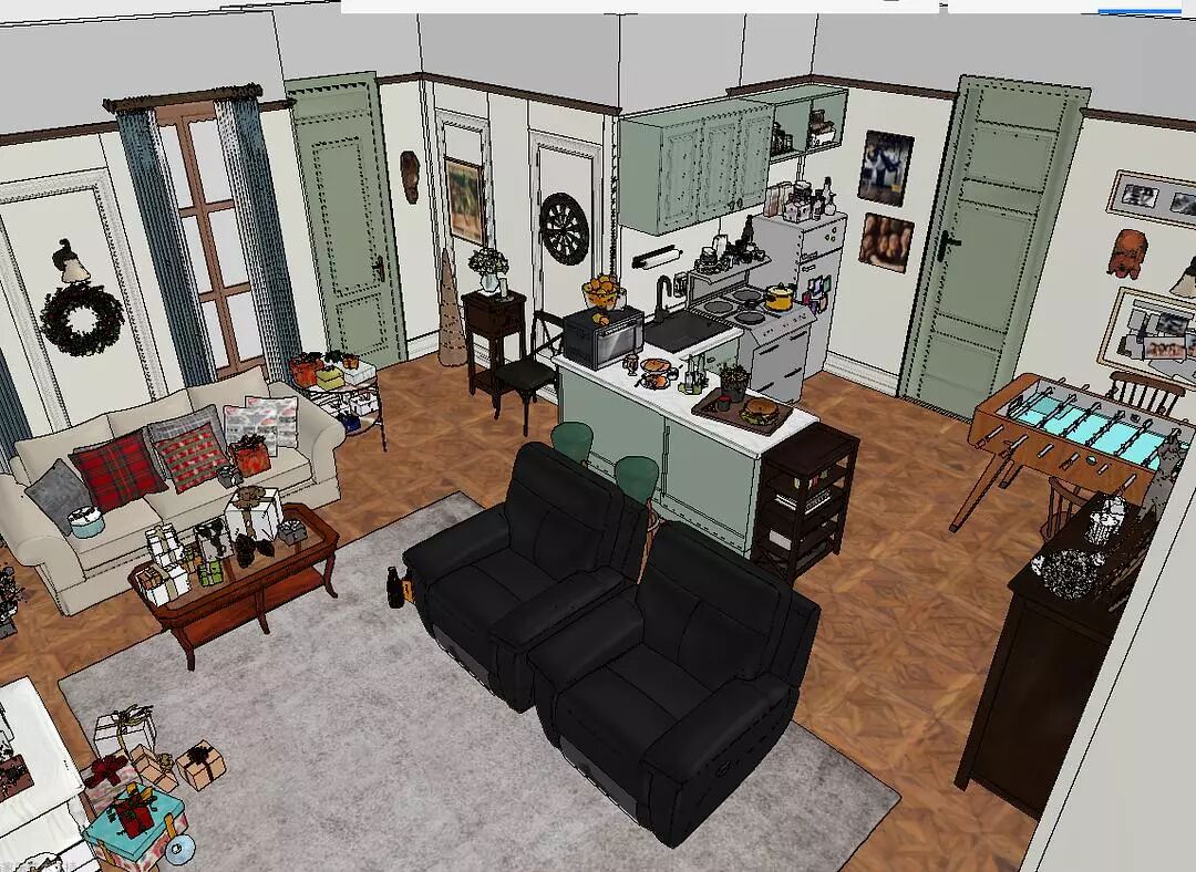 想做《老友记》很久了,最近终于开始着手,一边重温《老友记》,一边画图,还要收集很多图片模型,今天总算把莫妮卡家做出来了!