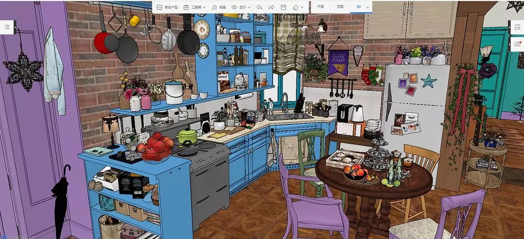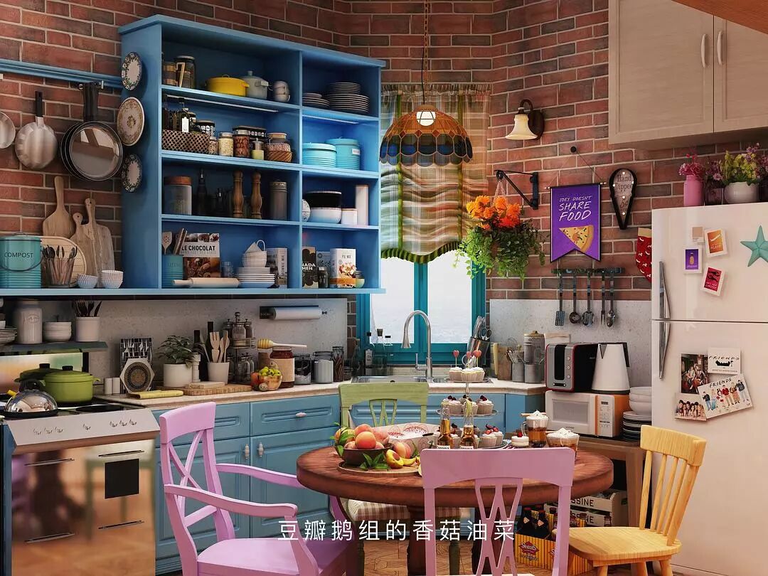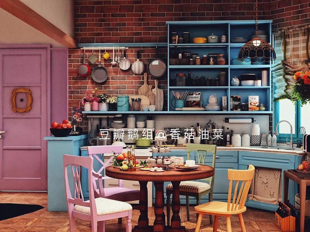 做厨房的时候我就想东西好多啊,也只有莫妮卡这样的强迫症才能归置好。餐桌上好多美食,晚上做着图就饿了!最终的效果图,里面一些小细节加了小彩蛋!