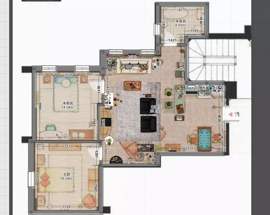 因为楼梯和夹层不方便放置 所以就设计了一个二层的隔断