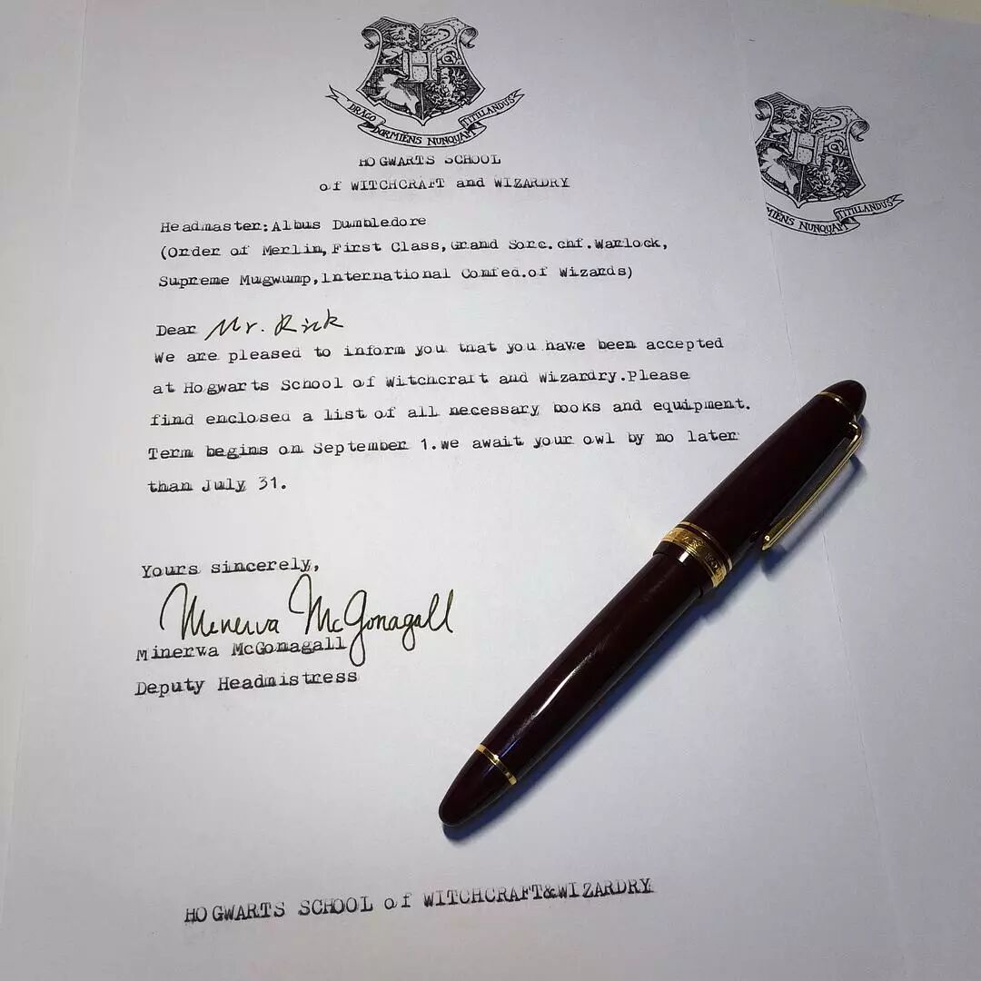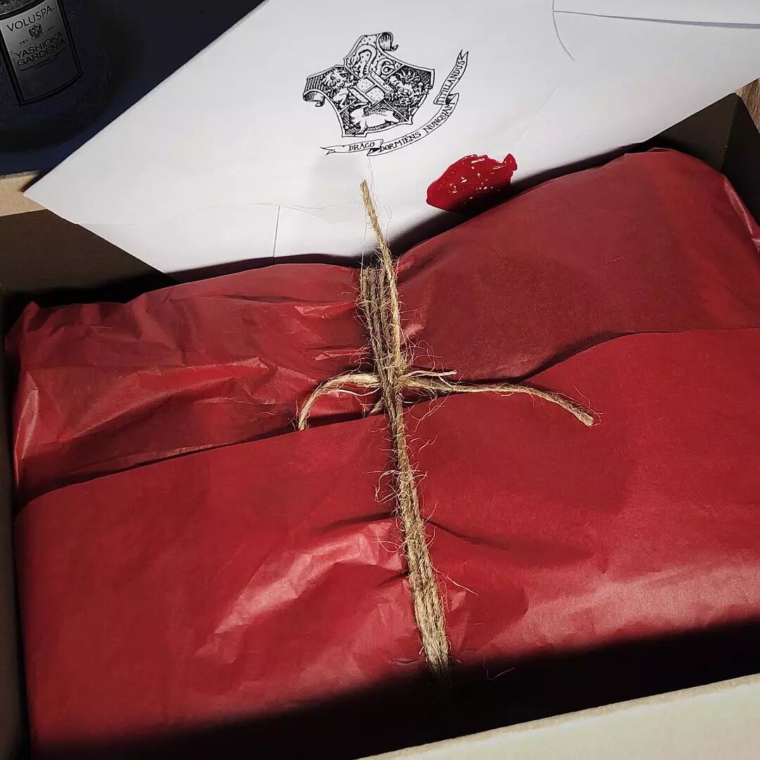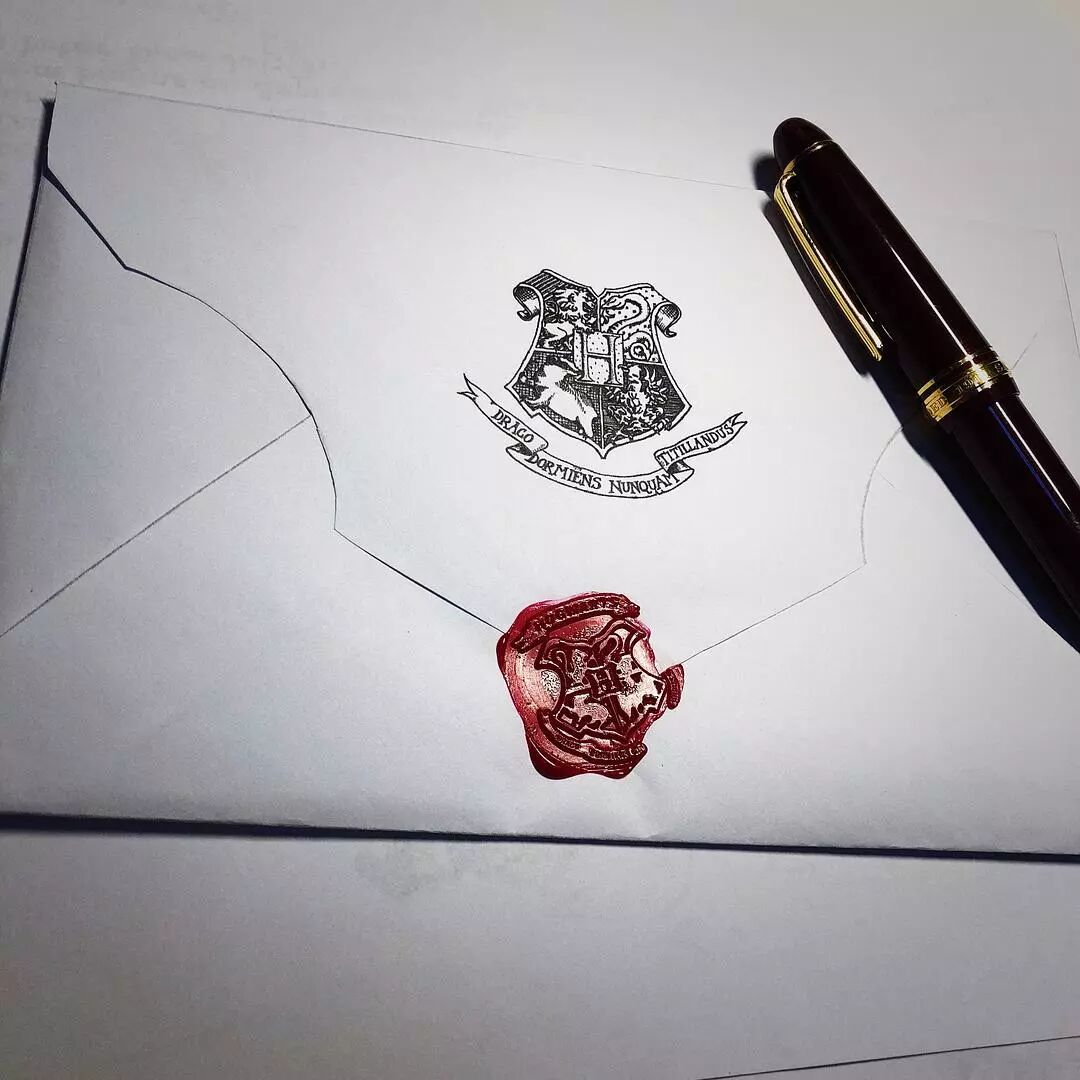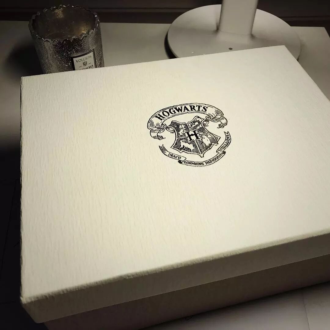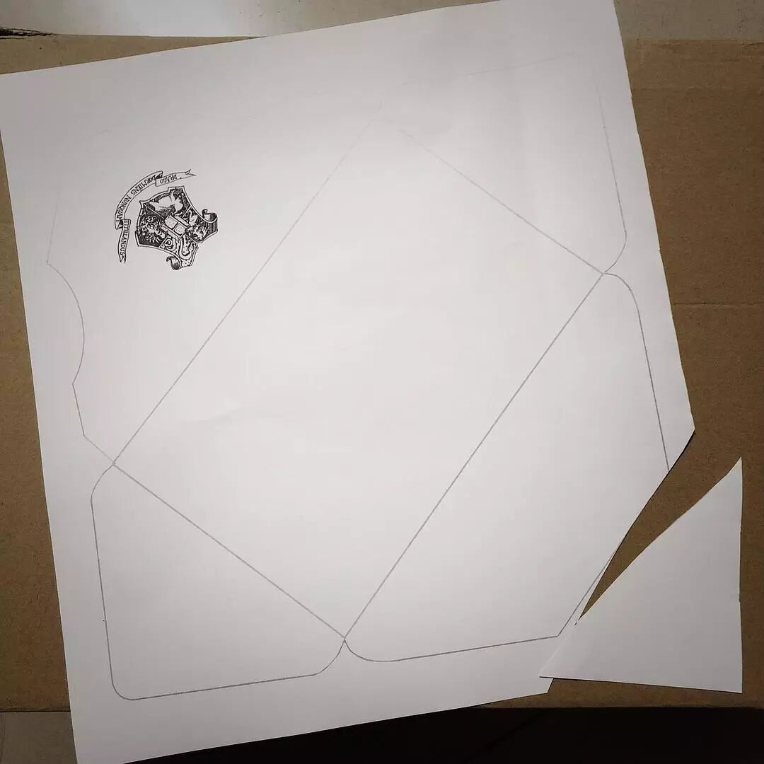 然后手工做了封霍格沃滋的录取通知书。校徽是翻墙找的素材,信封是自己算的尺寸在ps上面做的,然后去打印店打在了A3纸上回来裁了叠好就可以。