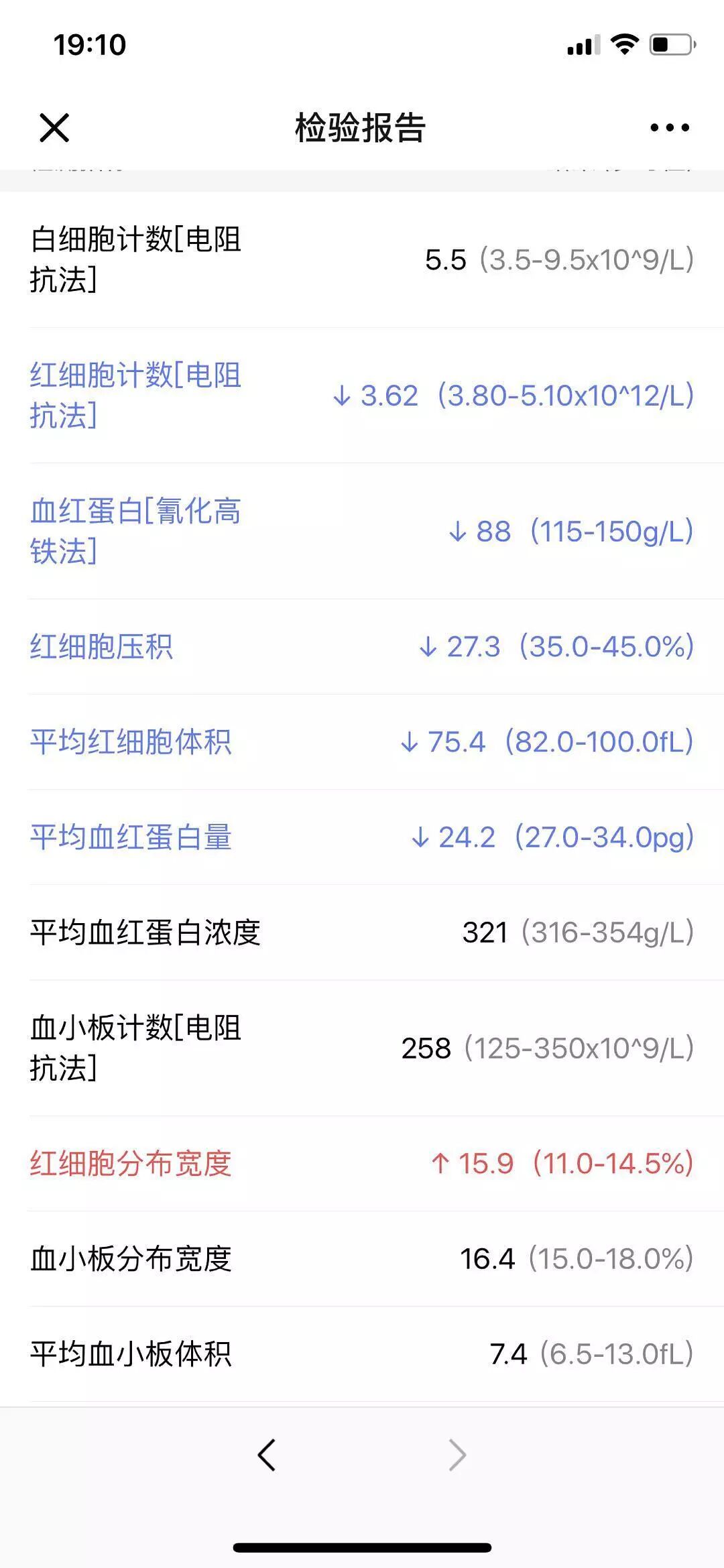 20点左右,新的CBC报告出来了,血红蛋白回上来了,变成了93了!大喜!