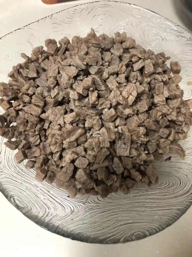 1.牛肉(黄瓜条、里脊等没有肉筋的部位)让超市大哥/大姐切成丁,冷水浸泡半小时;讲究的可以热水再焯一遍;