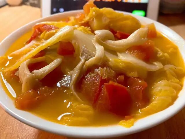 我自己改良了一下,加了番茄汤底:1碗水+1勺香油煮沸,加入配料炒匀(主要提鲜:菌菇、番茄等)+主蔬菜(娃娃菜、西兰花等)中火焖熟,出锅前加适量盐。
