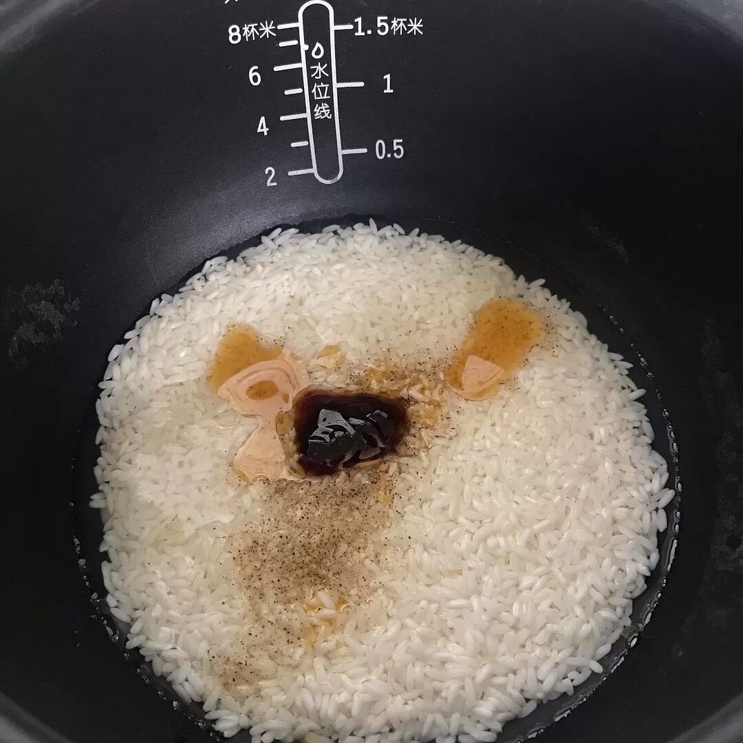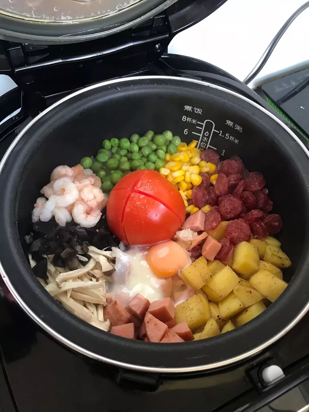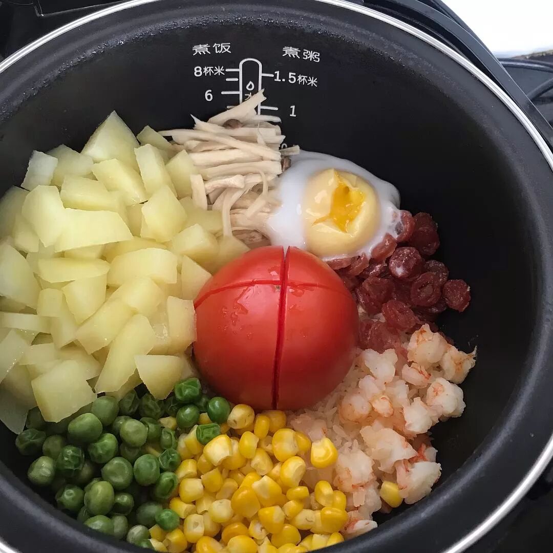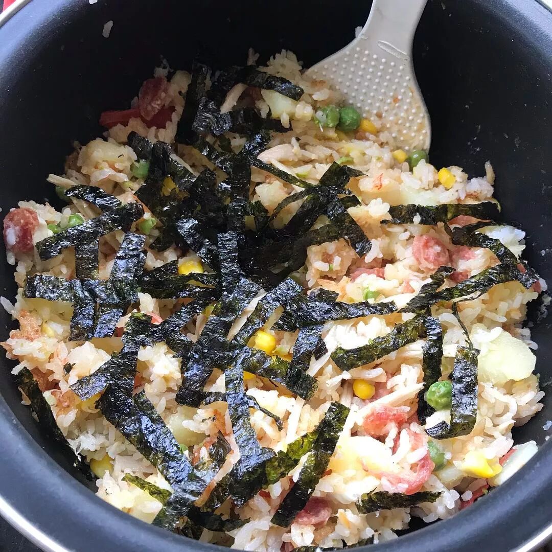只要把原料都放进去按下煮饭键 (在放原料之前加两勺香油 一勺蚝油 些许黑胡椒)最后出锅搅拌 撒上海苔条 人间美味 ~ 已经做过很多次绝对不会失手