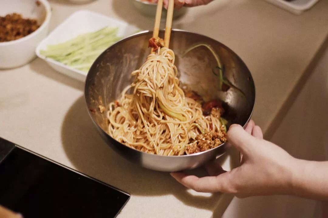 这个拌面其实是我在很早以前买的一夫的书里看来的,叫半半拌面~然后我根据自己的习惯改了一点点做法。我觉得真的特别好吃,应该叫做无敌拌面!