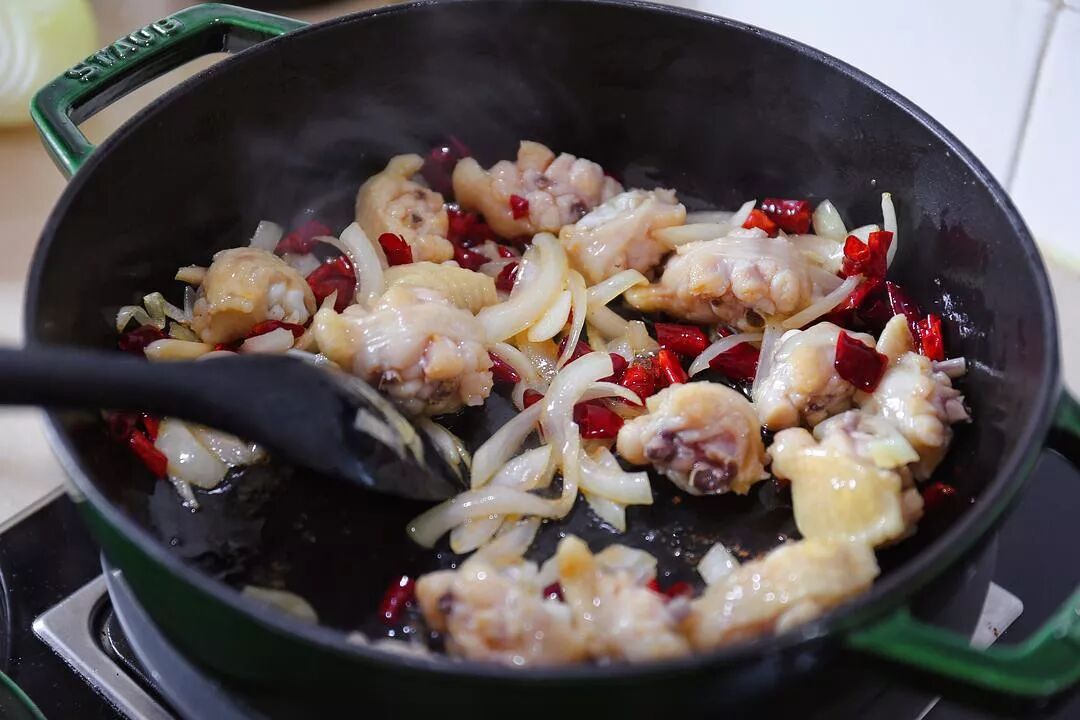 食材:猪里脊、青梗菜、香菇、小米椒、年糕