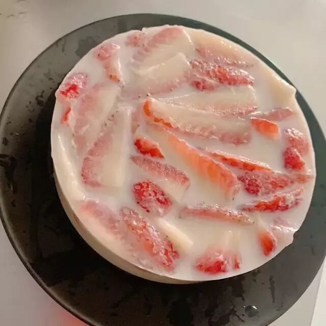 请姐妹吃我做的牛奶草莓布丁!