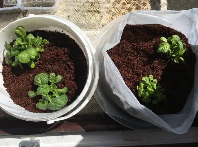 是椰糠土,我觉得挺好的,很干净而且很松,种土豆最好用比较松的土比如沙土
