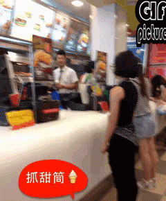 就是路边有个阿姨坐在电动车上,然后两手在前面捧着发呆,就好像手里拿着个手机一样。结果飞车贼一下就冲过来了,照着阿姨空空的两个手抓了一把然后就跑了,给阿姨吓一跳,也不发呆了