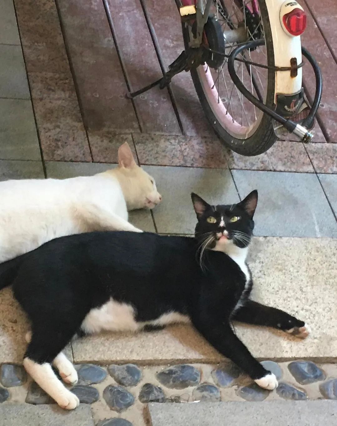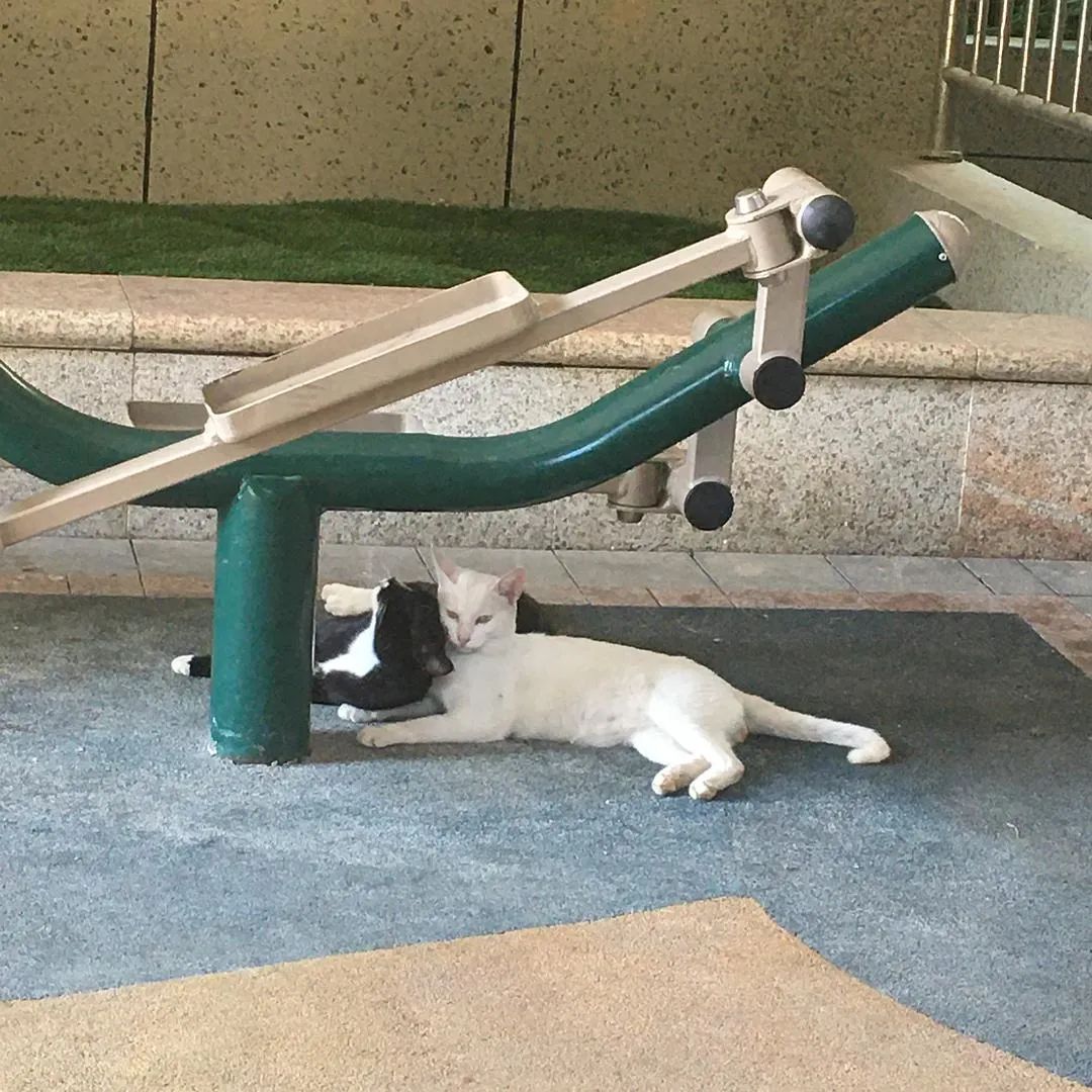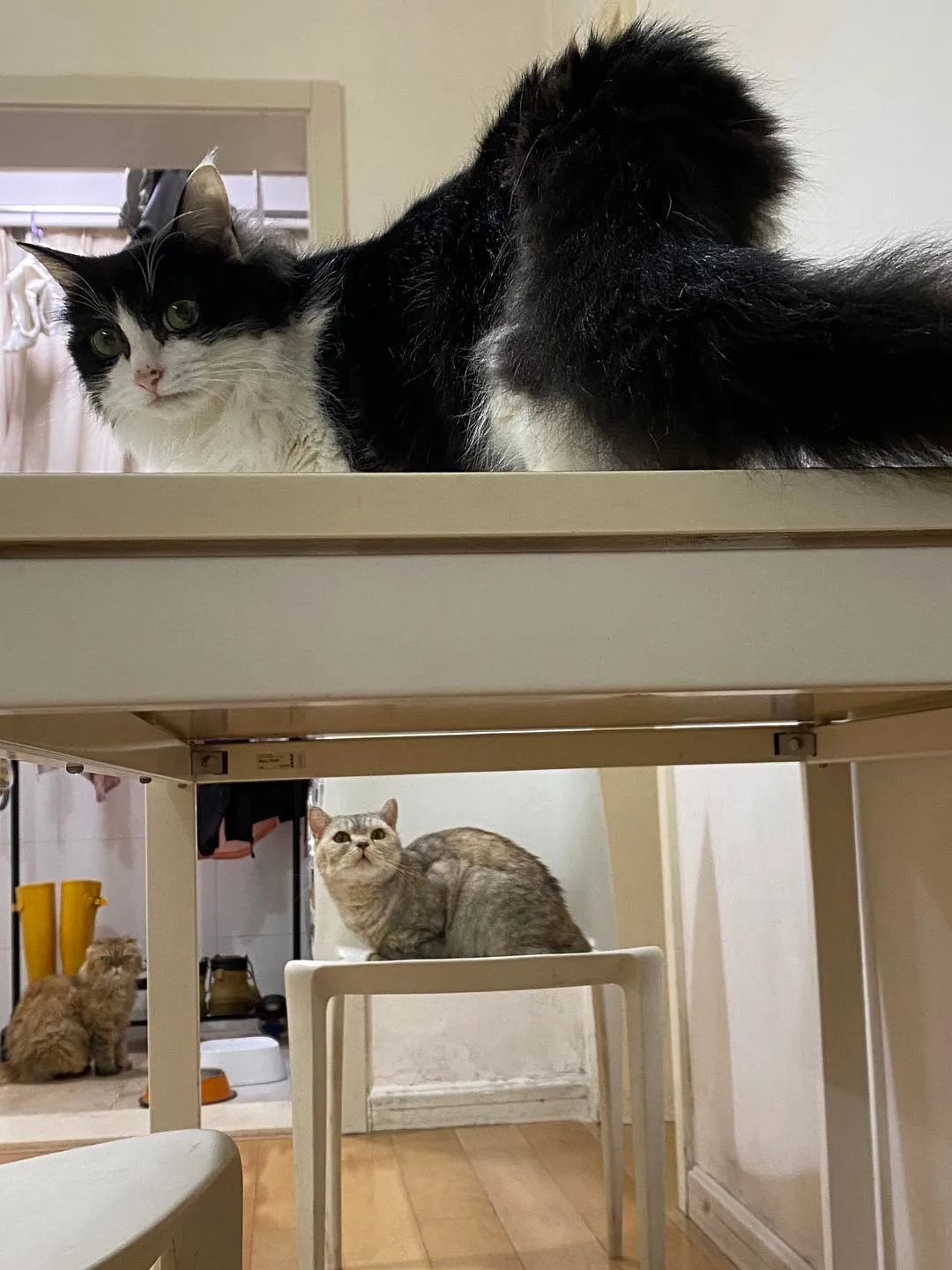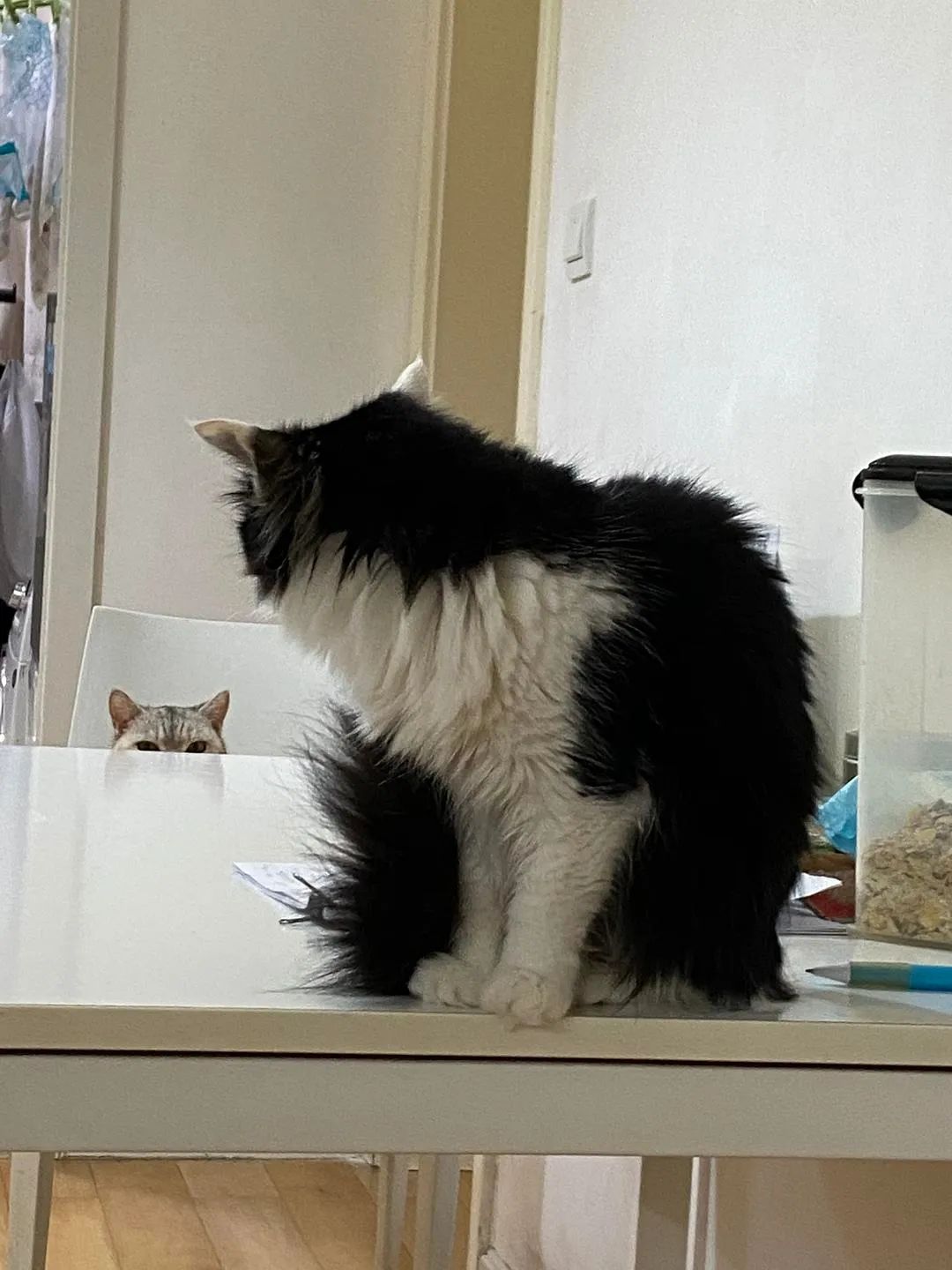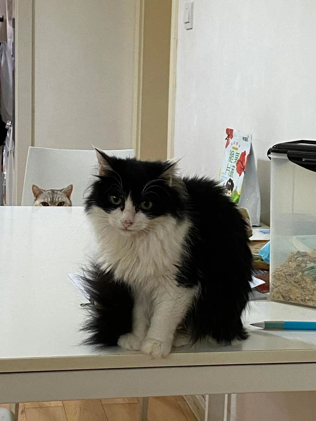 自从客居的小雪来了以后,臭臭才知道世界上还有其他的女猫咪,她俩关系……现在还没找到一个平衡点,互相看对方不顺眼,不过又没真打过架,一般都是在一定距离里,用各种有意义的眼神瞪着对方。这是我家的小动物社交,可能画风有点特别 🤷🏻♀️“没头脑和不高兴”这样的个性组合在猫的世界也存在。小区里一个排水口,小男孩在喊,猫猫快来快帮忙。猫猫伸爪子到格子下面抓抓抓。我还以为是女生有什么掉下去了,要猫猫帮忙。后来听他们讲,才明白,是在捉一条小蛇。小蛇弹一下,猫猫也吓到跳起来一下,然后又耐不住继续伸爪子下去抓抓抓