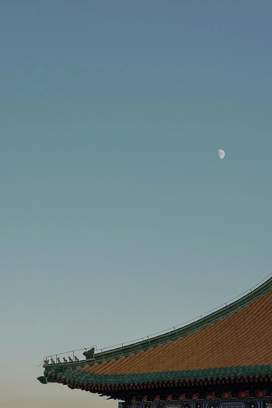 在隆福寺看场日落,看月亮又再次升起。 来自豆瓣话题#北京城里你最爱的精神地标#