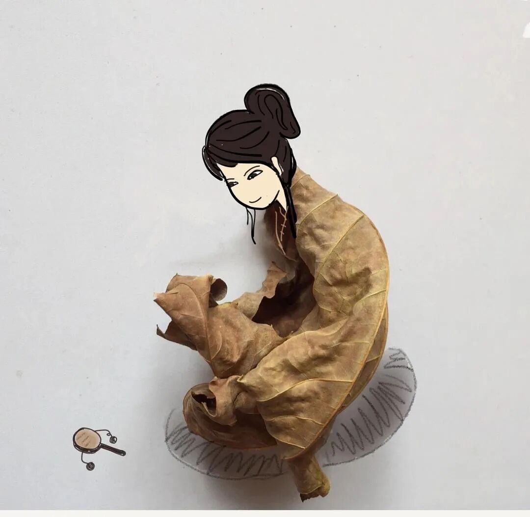 落叶创意画 来自豆瓣话题#用秋天落叶搞一个艺术创作#