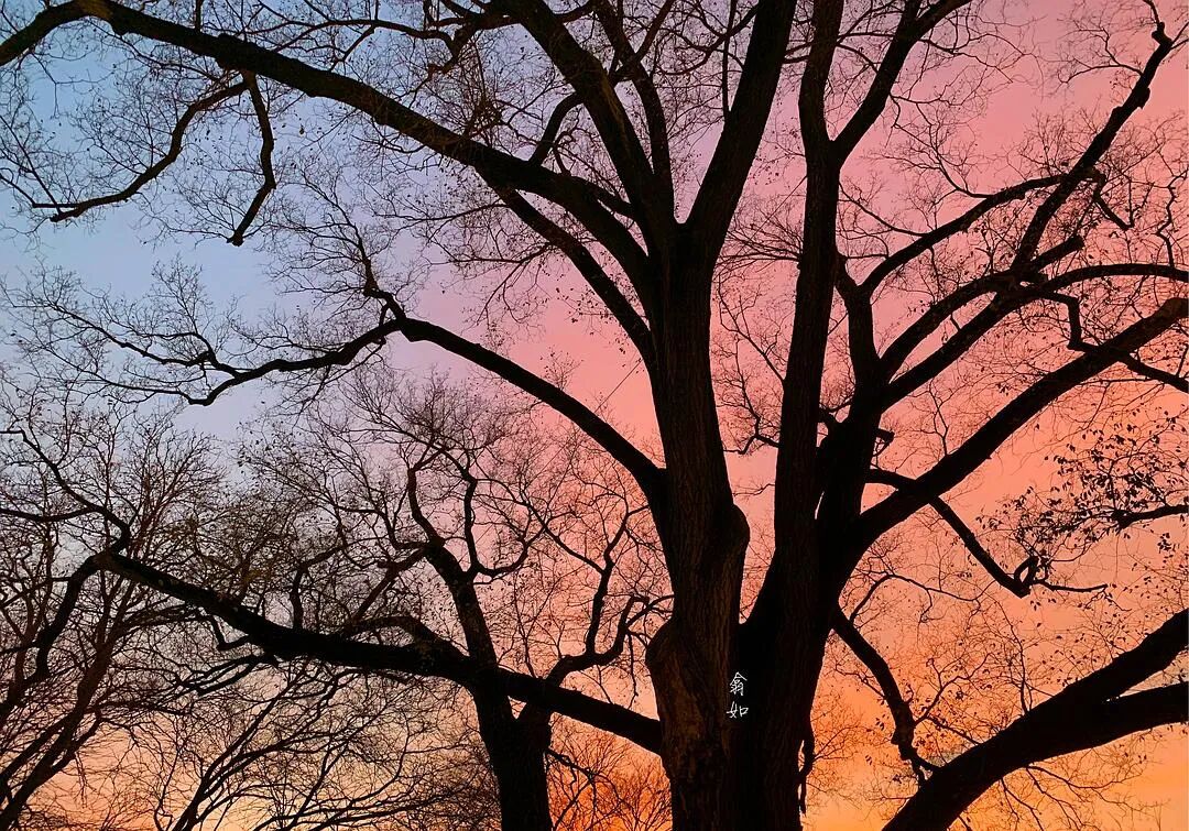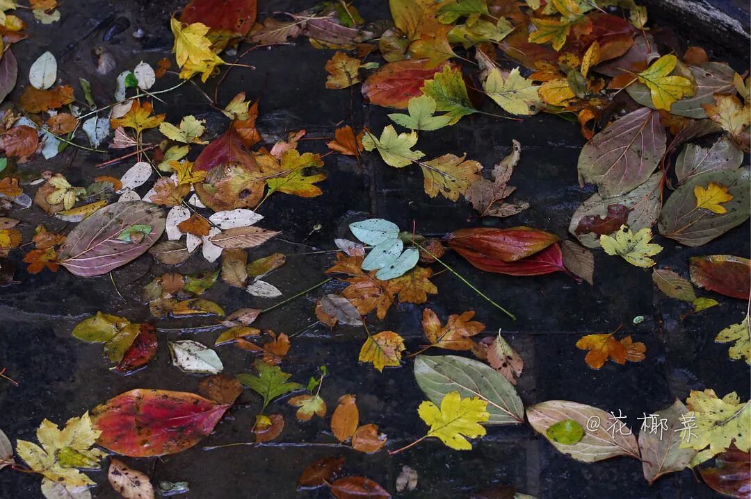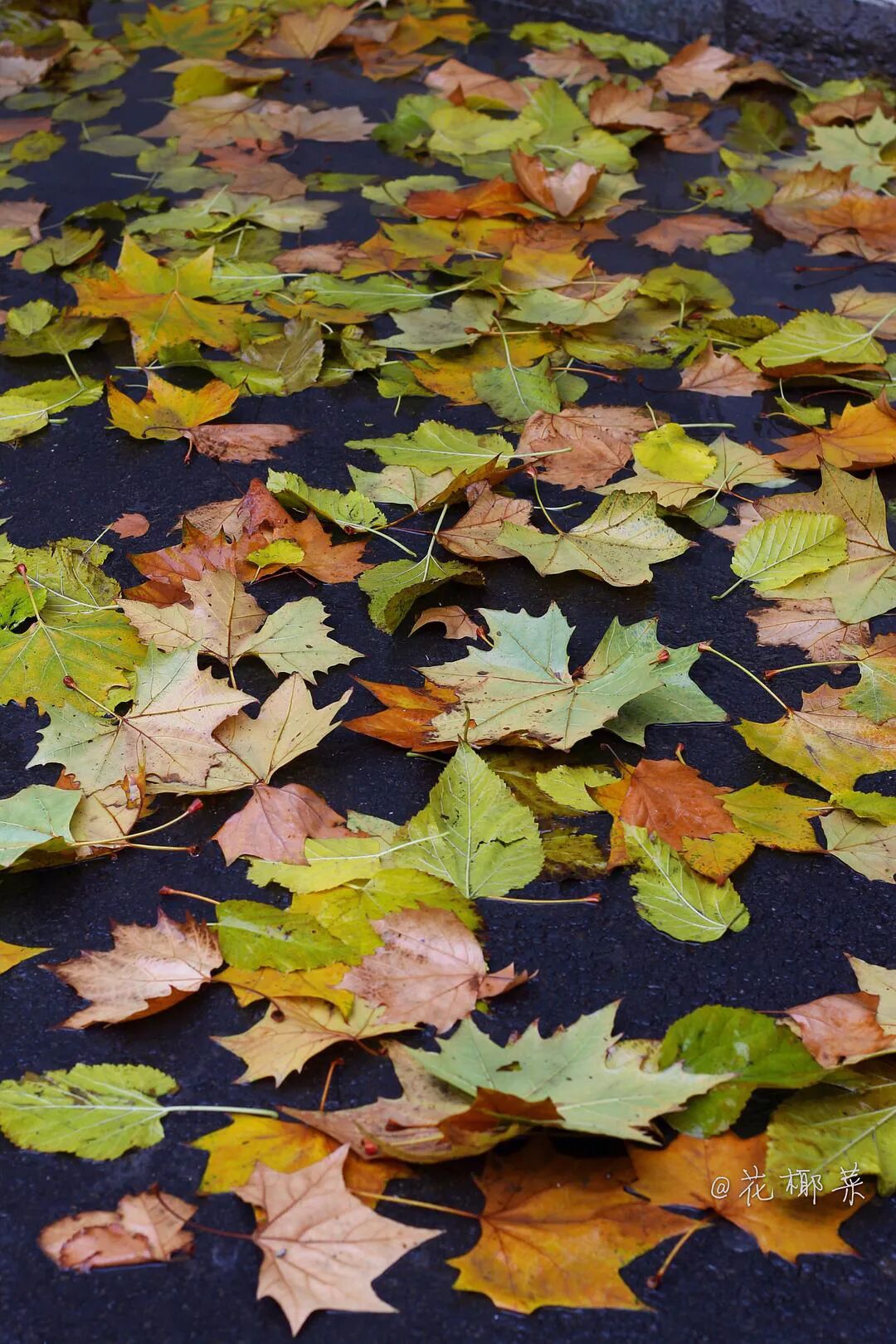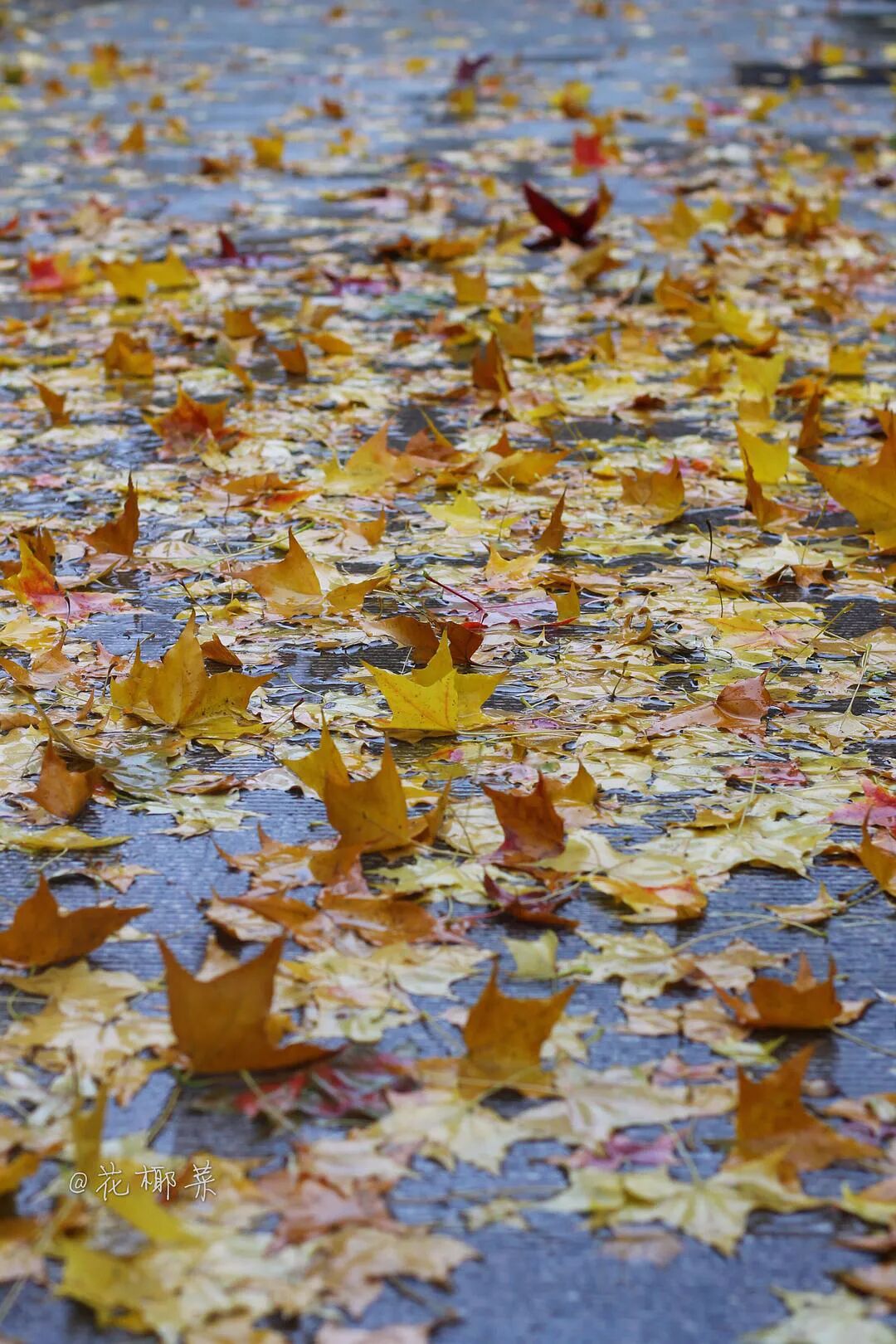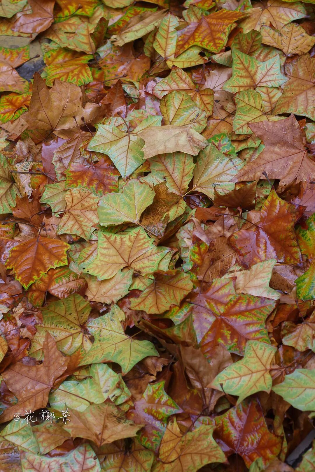 一整日的急雨,每棵树下都是天然的纹样。银杏树最后的落叶里,混入了一些极袖珍的小扇,还未来得及长成。泊在路边的车,被悬铃木界的交警贴满了罚单,每一片叶脉都清晰着色,像是一个森林。元宝槭的新鲜落叶还支棱着,像海边张着背鳍的弹涂鱼,更斑斓的是柿、槐、榆、山楂,热带海底世界的色彩。落地的叶子大多数都是叶背朝上,植物学家们是否为这个现象写过论文?一切都将萧瑟了。是谁抢劫了森林,艾米莉·狄金森说,“充满信任的森林,毫无戒心的树,交出自己的松果和苔藓”。