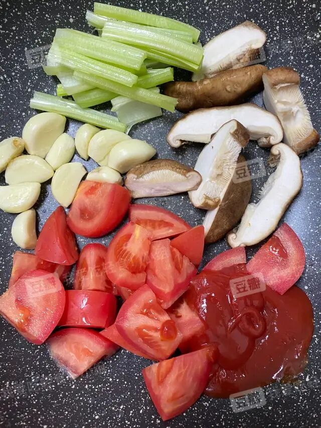 西红柿切块、香菇切厚块、完整蒜瓣、大段芹菜跟、适量番茄酱。*其中香菇可以替换为茶树菇,杏鲍菇不太🉑香味不够。*如果家里材料比较多,也可以再加半个八角小段桂皮,香味会更加丰富。2️⃣倒入普普通通的水,没过食材,水量根据你后面要下多少菜/想喝浓一点还是稀一点来调整:3️⃣小火慢炖(我开小火就去看电影了,大概煮了30分钟,番茄已经炖烂了)4️⃣根据自己口味,+盐+黑胡椒+香醋(少量)+鸡精(少量),用筷子搅搅,关火。芹菜番茄大蒜都已经炖烂了,烂烂的,汤汁就特别浓,和香菇的味道混在一起,超绝!以上仅仅是锅底,加菜在步骤3️⃣4️⃣后边加即可,想吃什么加什么。![]()