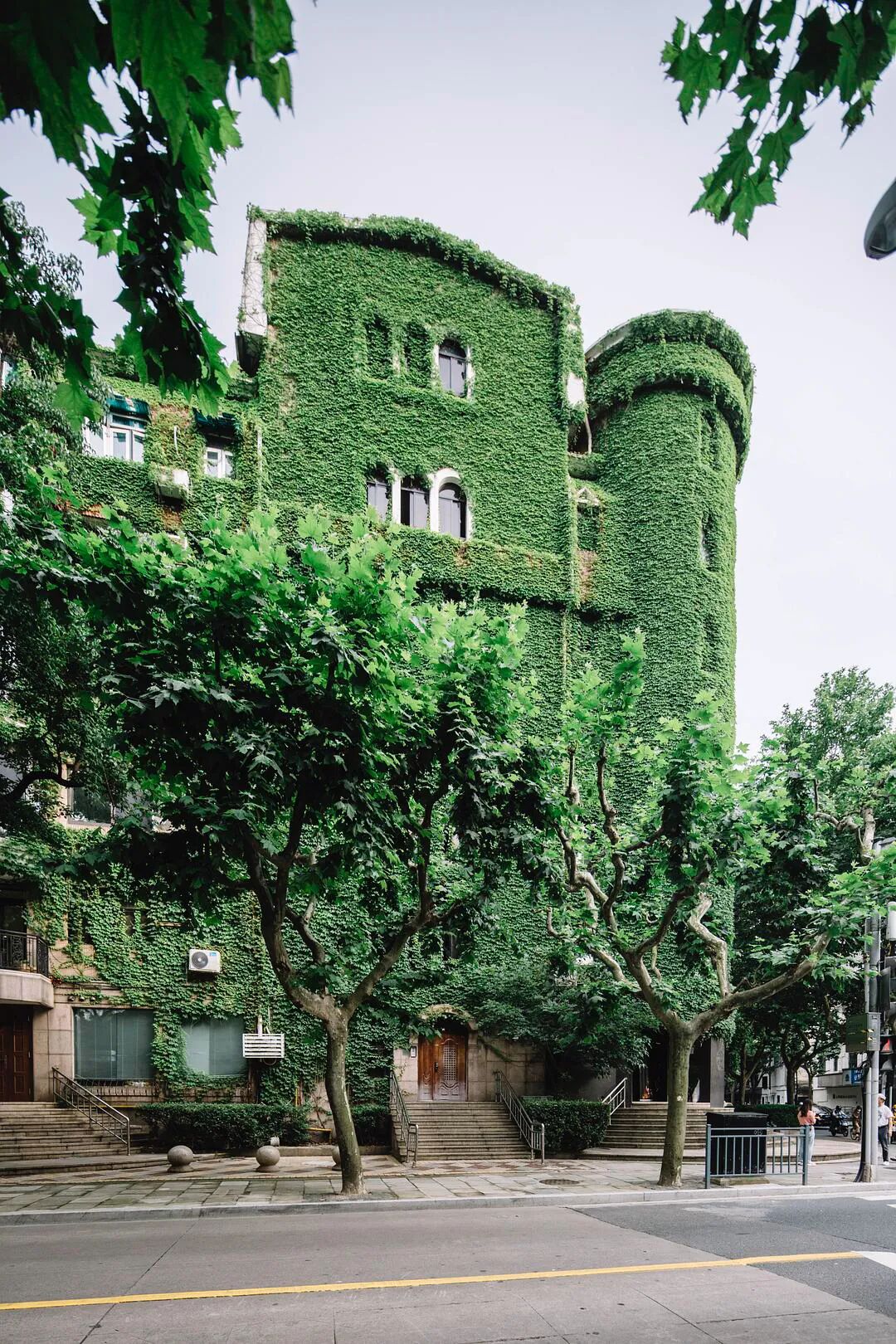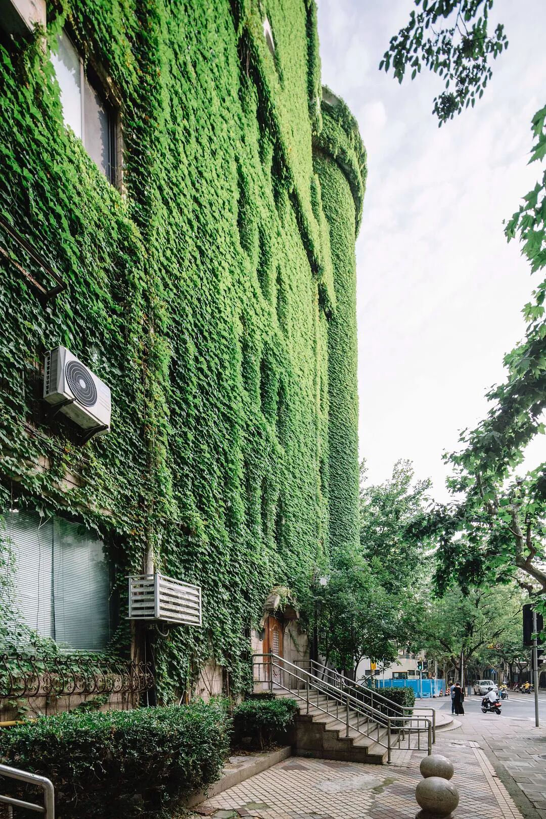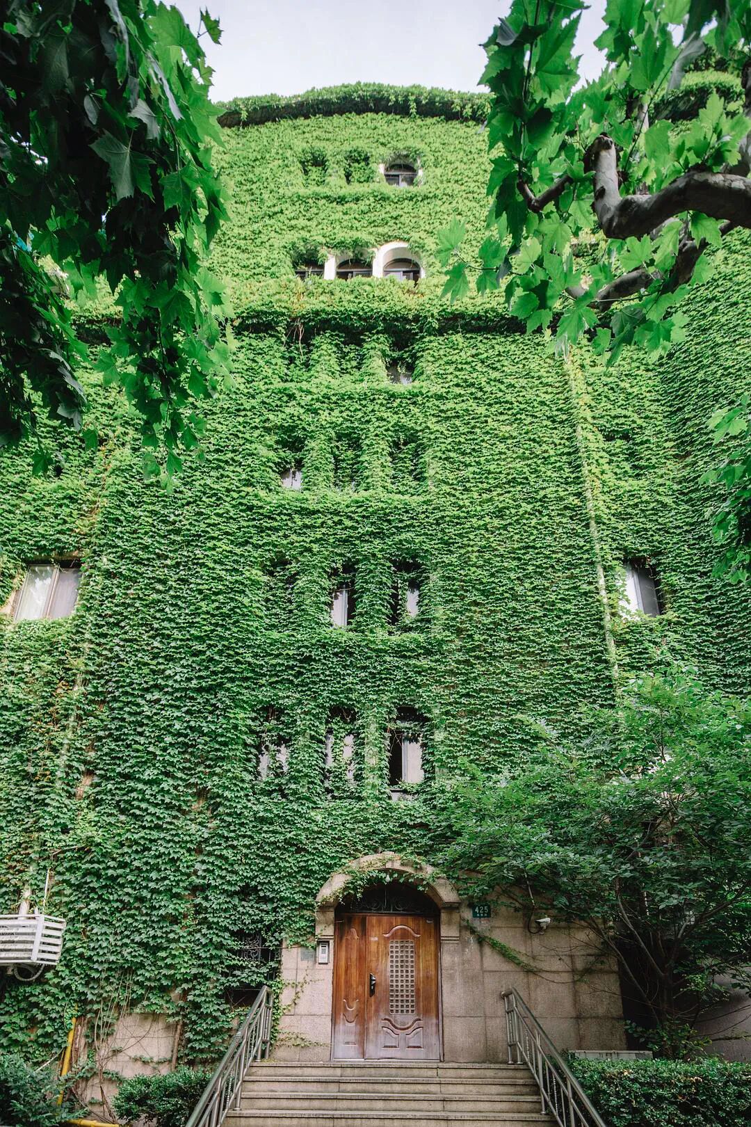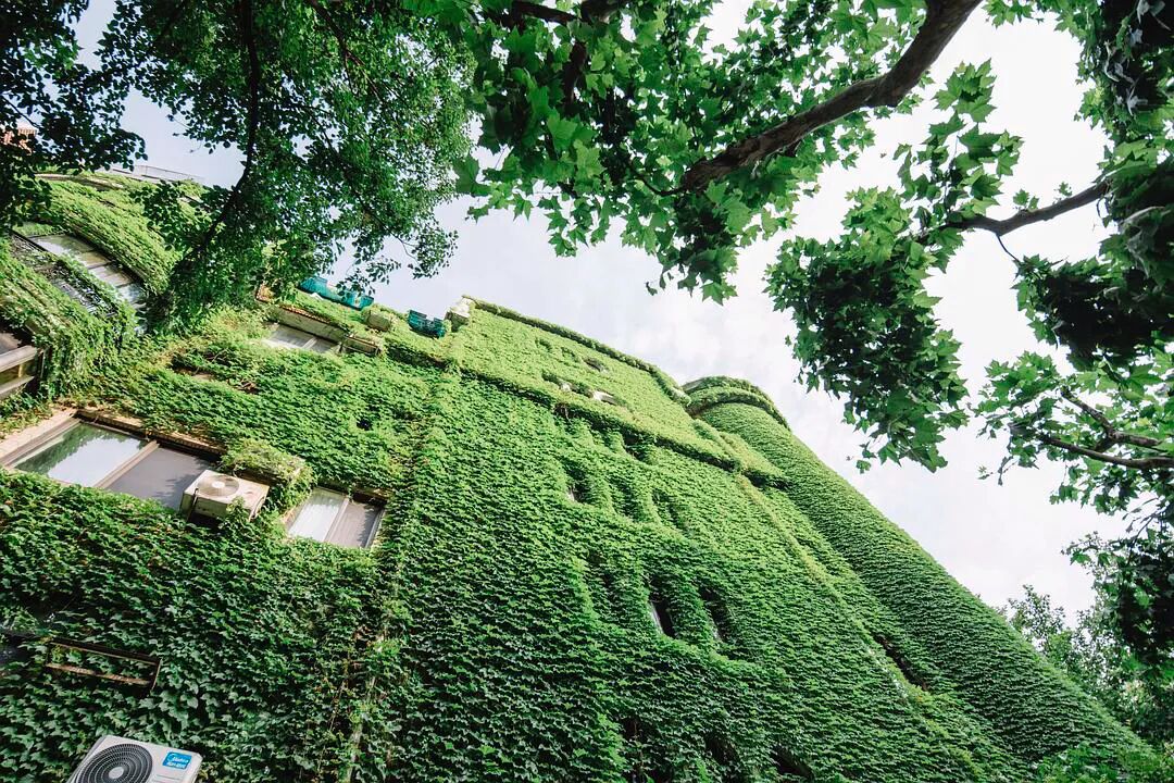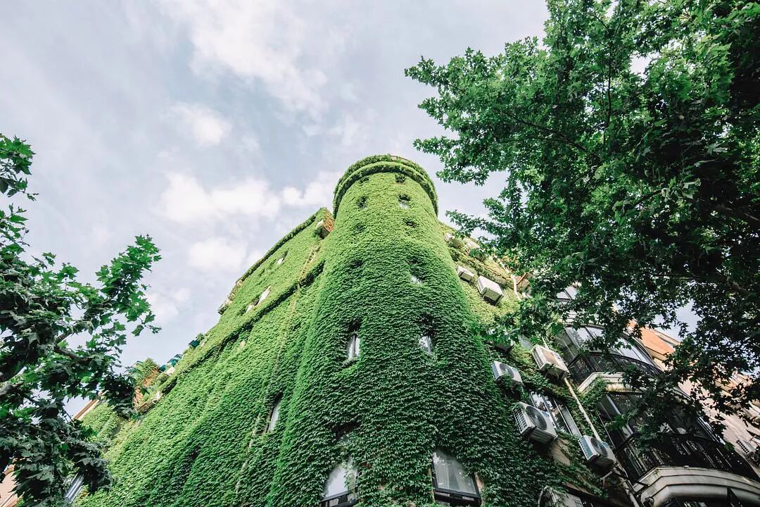 @四月 大佬四月老师多次要求要看爬山虎的绿色城堡,昨天到陕西南路地铁站,外面大雨哗哗的下也没有拍成,今天晴一些,终于安排上了。 眼看五月快结束了,天气也热起来了,水逆也快来了。 来自豆瓣话题#上海城市摄影#