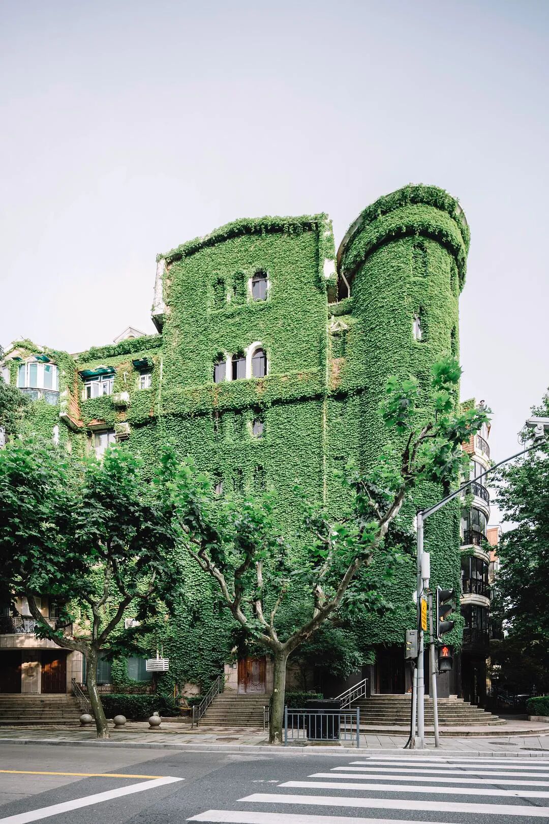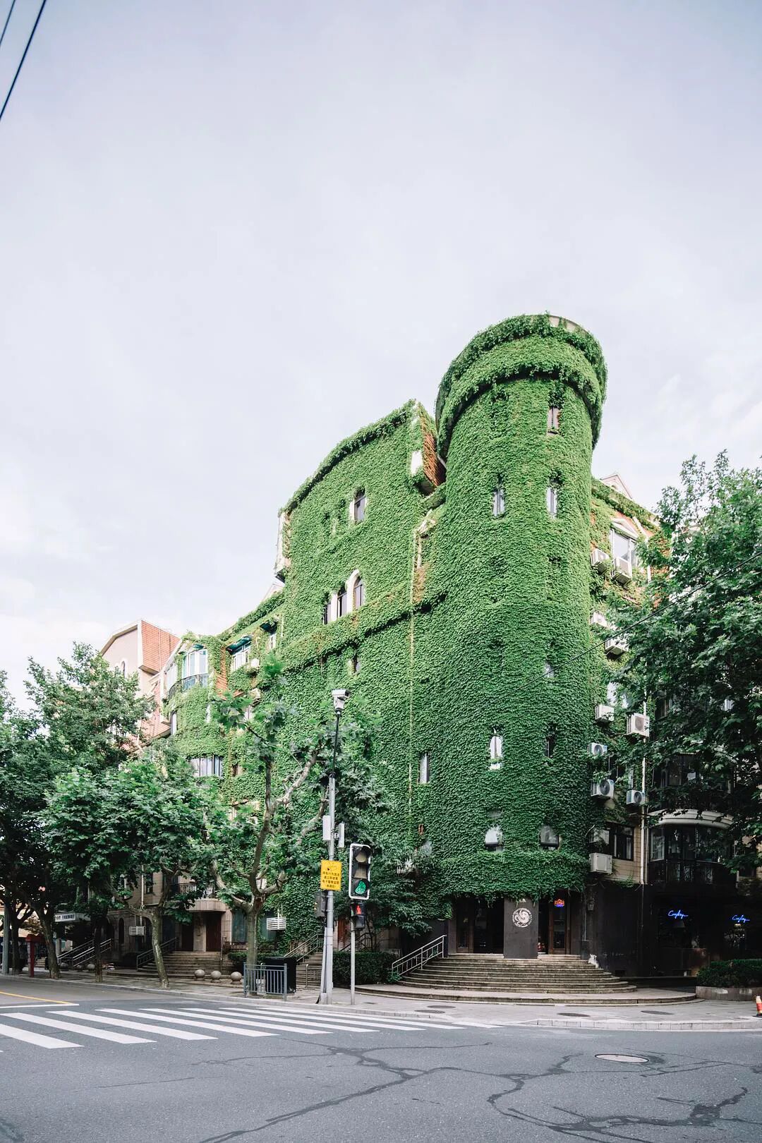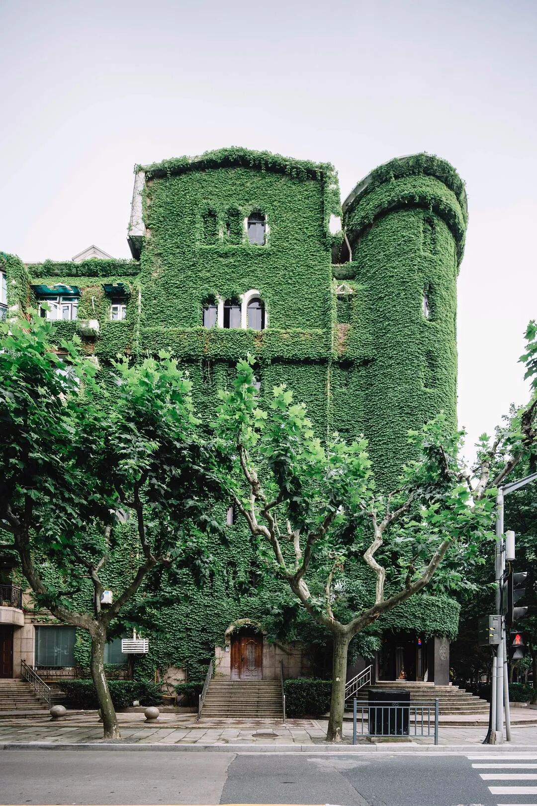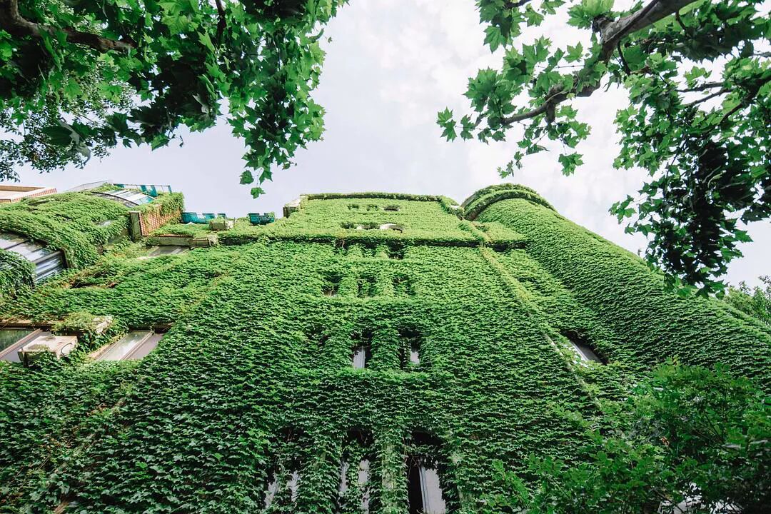@四月 大佬四月老师多次要求要看爬山虎的绿色城堡,昨天到陕西南路地铁站,外面大雨哗哗的下也没有拍成,今天晴一些,终于安排上了。 眼看五月快结束了,天气也热起来了,水逆也快来了。 来自豆瓣话题#上海城市摄影#