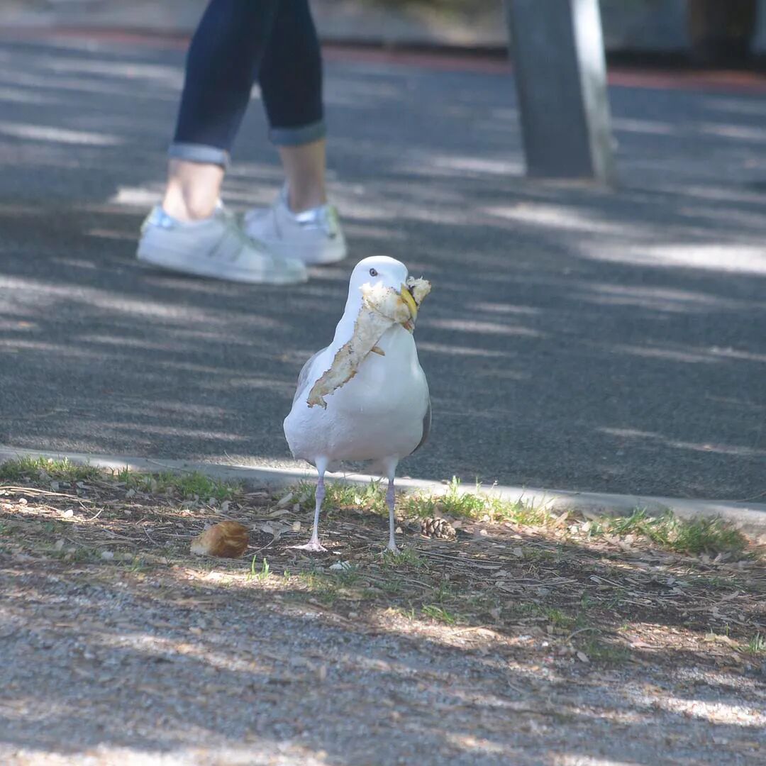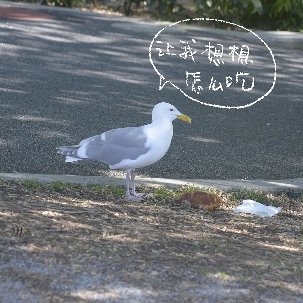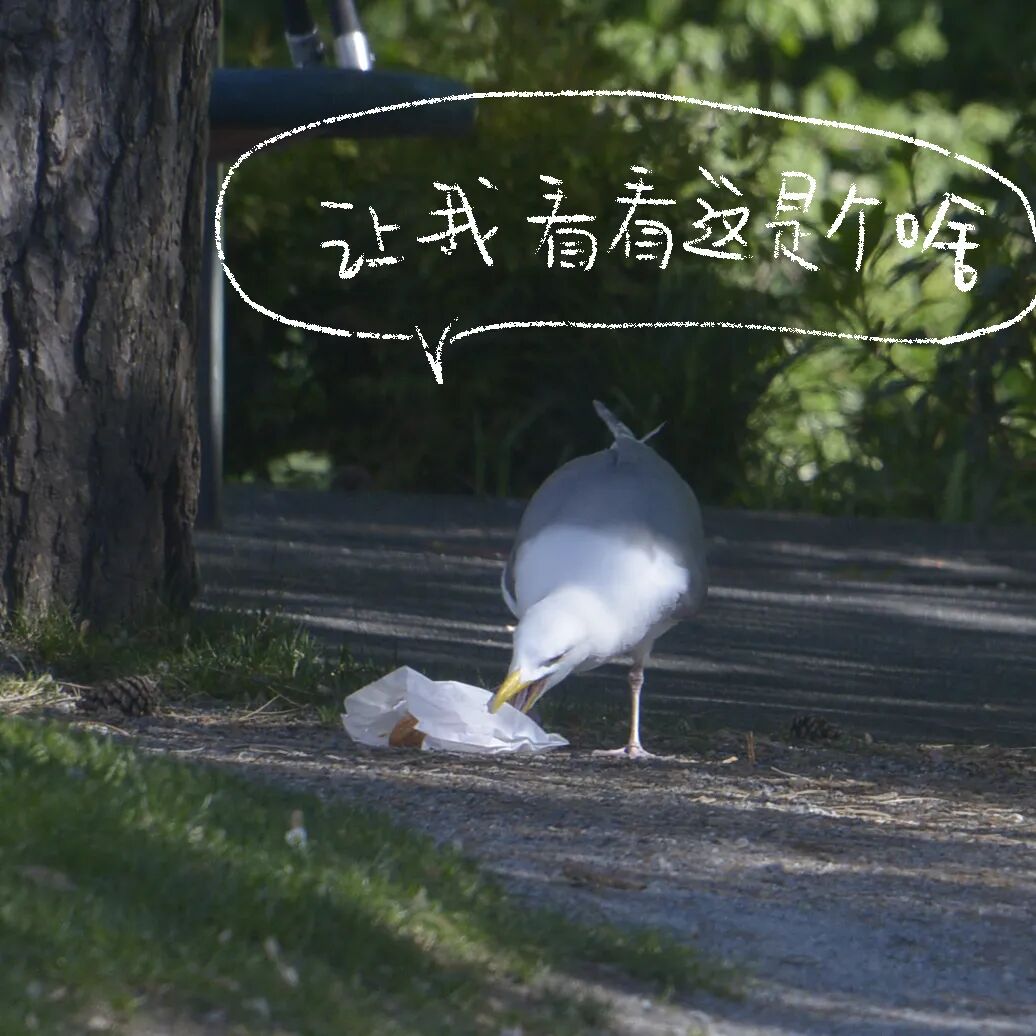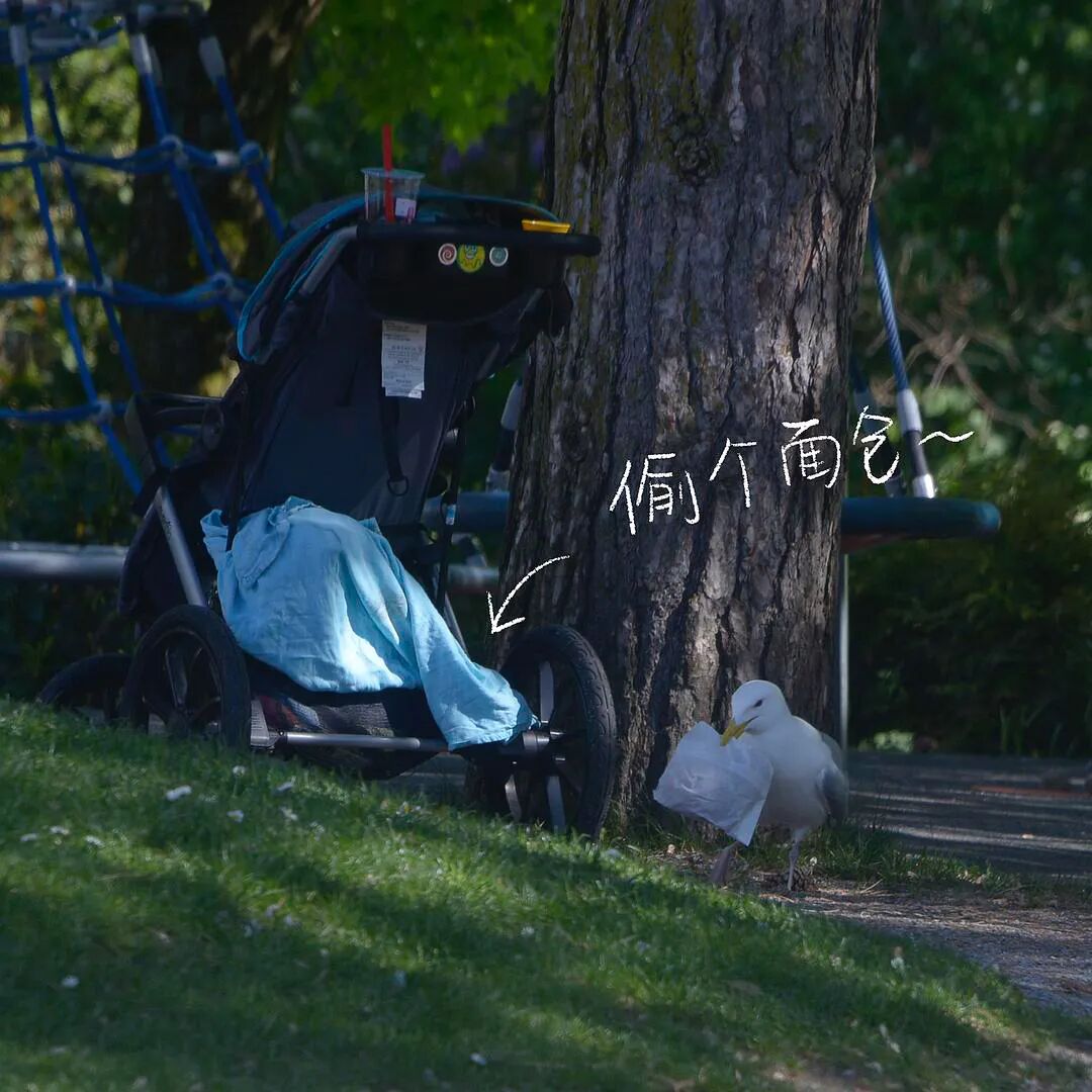 巧不巧,去公园溜达,哎呀...正好被我拍到了海鸥犯罪现场。我老远看到海鸥从人家婴儿车里掏出来个白色的小包,但是太远了...等我冲到海鸥面前想要阻止它,海鸥已经把面包抖落到地上了...=_=面包都脏了,估计人家也没法吃了。 海鸥直接把牛角面包(可能是,感觉是chocolate croissant)分成两次,直接吞下去了,然后白色的包装纸被风吹走了。短短一分钟,地上什么痕迹都没有留下,似乎无事发生。没有找到婴儿车的主人...哈哈哈哈等他回来估计会很懵,面包不翼而飞2333 来自豆瓣话题#村啊#