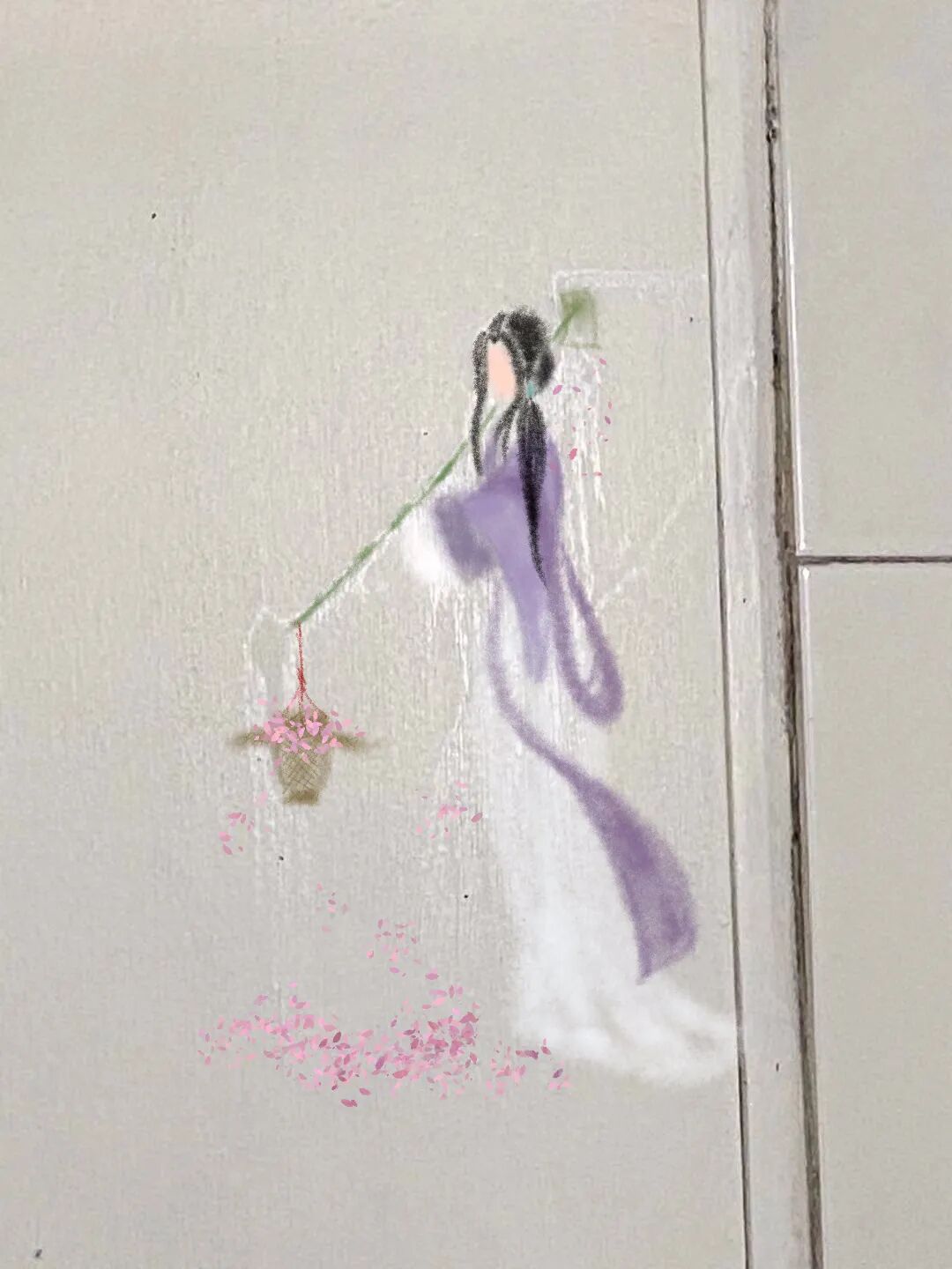 女儿给我讲故事之二: 浴室门上的黛玉葬花 来自豆瓣话题#用自己拍的照片接龙讲故事#