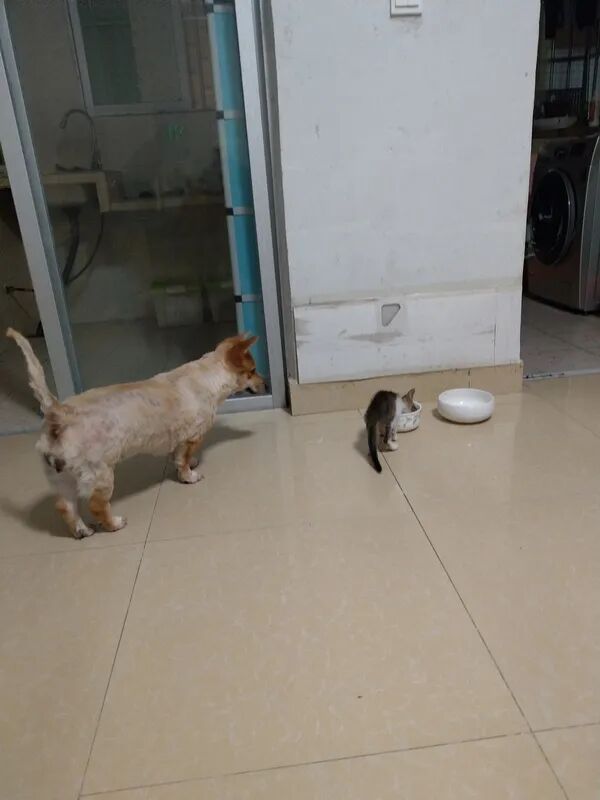 猫长得好快,刚回家时简直小耗子(忽略一下被我弟剃秃了的狗)