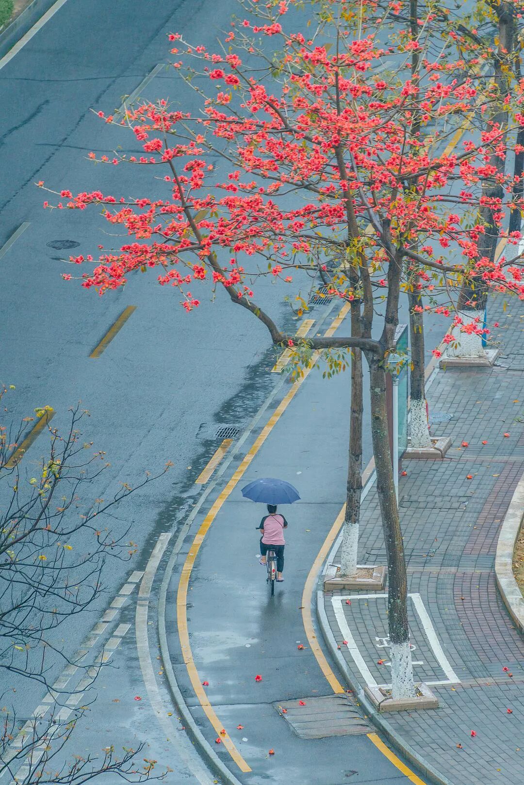 等校车时起了大风,晚樱星星点点飘落满地。 来自豆瓣话题#城市花雨大赏#