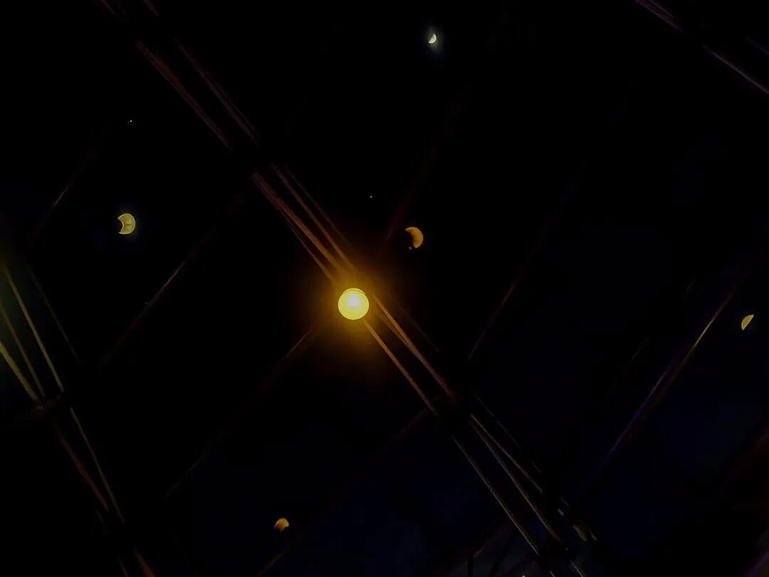晚上去做核酸的时候抬起头 看到顶棚的灯和月亮构成了一个宇宙 来自豆瓣小组“无用美学”