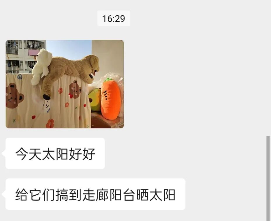 天气好好,朋友在阳台晒娃娃,好可爱鸭 来自豆瓣小组“可爱事物分享”